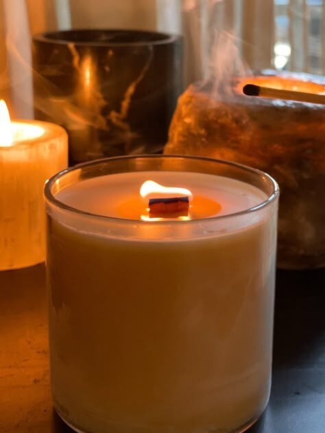 A warm and inviting blend that captures the essence of fresh baked goodness. It features rich notes of pumpkin intertwined with spicy cinnamon and clove, creating a nostalgic and comforting scent. The fragrance also includes fresh orange and a hint of almond to sweeten the creamy custard signature of this all-time favorite. Handmade highly scented soy wax candle with all natural ingredients, no artificial fragrances or dyes. All candles are made to order. Burn time is more than 40 hours. Comes in a beautiful amber glass candle jar with a silver metal decorated lid great for any decor. Candle measures 3 1/4 inch diameter and is 3 3/4 inches tall with lid. Comes in a stylish black tube container as a gift box. Made with a wood wick that burns cleaner and longer, sounds like a crackling fire. Please use caution when burning candle, keep out of reach of children and away from drafts. After burning, trim wick to 1/4 inch. If you have and problems or questions, please contact me via Ebay, Thank you.