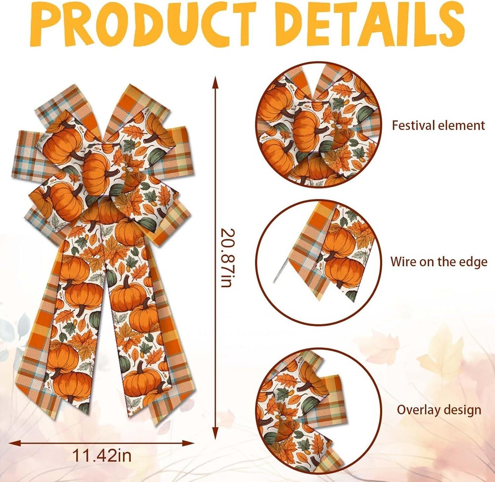These fall pumpkin bows are absolutely stunning! The soft linen and burlap feel high-quality, and the rich orange plaid with maple leaf accents is perfect for Thanksgiving. Love that they’re ready to use but still customizable—great for wreaths, mantels, or gifts. The wired edges make shaping a breeze, and the size is just right for a bold statement. Adds such cozy, festive charm to any autumn decor!