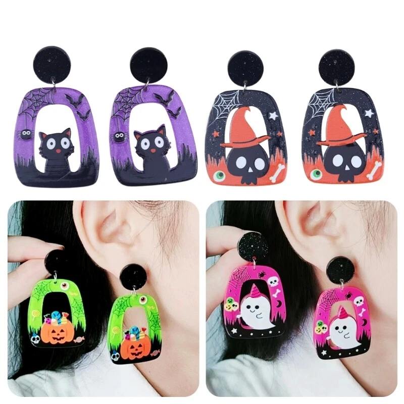 Features: Elevates your with these trendy and eye catching Halloween Acrylic Earrings. material lightweight and acrylic material, these earrings are comfortable to wear and can withstand daily use. These earrings are suitable for various occasions such as Halloween parties or other themed parties, adding a festive The exaggerated of the earrings is eye catching and unique, making them excellent accessory for street fashion or music festivals. Whether you're attending a party or going out for a casual outing, these earrings will add a touch of charm to your outfits. Specifications: Acrylic Pumpkin Hat Skull Size: As Shown In The Picture Package Includes: 1Pair Earrings note: Please allow 1-2cm errors due to manual measurement, make sure that you do not mind before you order. Due to the difference between different monitors, the picture may not reflect the actual color of the item.