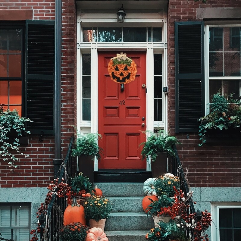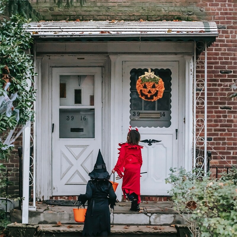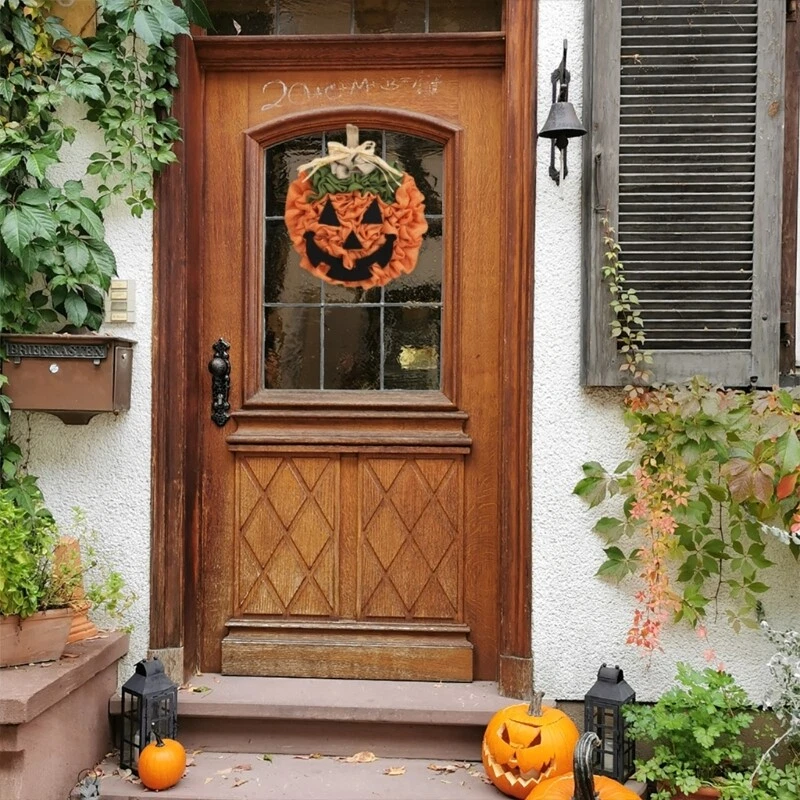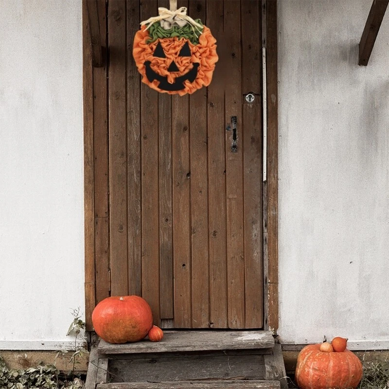 Pumpkin Wreath for Halloween Thanksgiving Front Door Decor Hanging Home Décor
