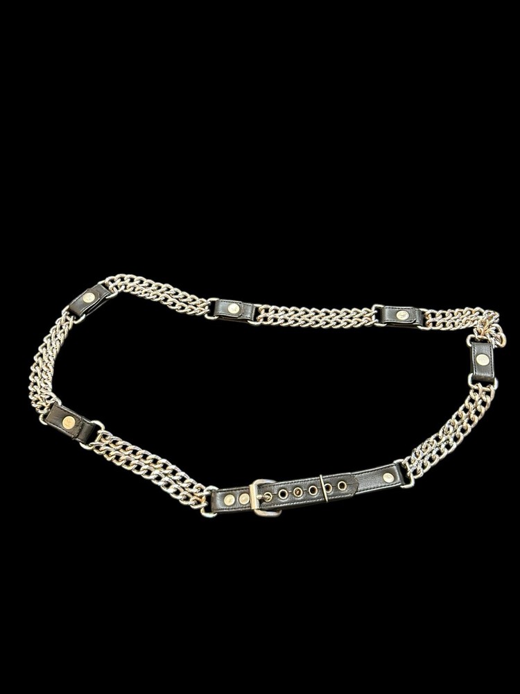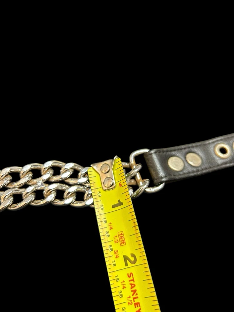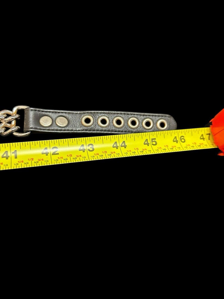 Punk Goth Chain & Leather Belt Men Size Large Black Silver Toned Metal 46” Long Good used condition . Normal signs of wear and tear, minor scratches. Please study pictures carefully before purchasing Feel free to ask us any questions. Thank you for visiting our store! 12