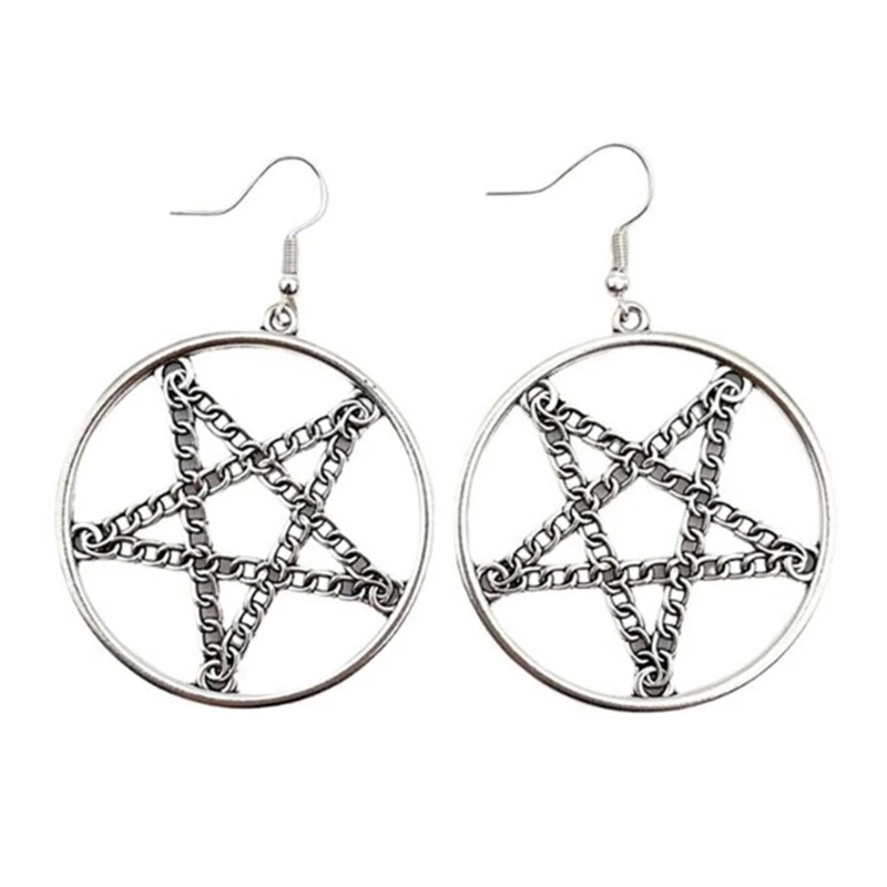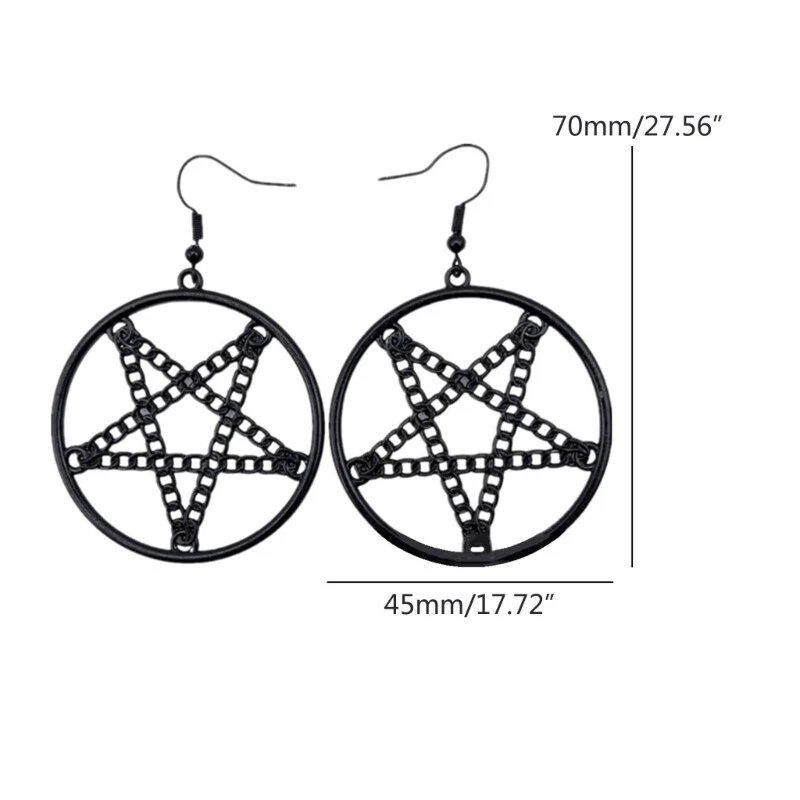 Features: Stand out from the crowd with this vintage and punk inspired Pentagrams Gothic Earrings Crafted with attention to detail, this necklace features a metal pentagrams pendant that exudes mystery and for Halloween enthusiasts, gothic fashion lovers, and trendsetters Whether you're attending a Halloween party, themed gatherings, or simply adding a touch of edgy to your everyday outfits, this is a must have accessory. your individuality and make a statement with this eye catching earrings that combines witchcraft vibes with fashion forward Specifications: Alloy Color:Black,Silver;(Optional) Size:Approx.6.5x4.5cm/2.56x1.77in Package Includes: 1Pair Earrings note: Please allow 1-2cm errors due to manual measurement,please make sure that you do not mind before you order. Due to the difference between different monitors, the picture may not reflect the actual color of the item.