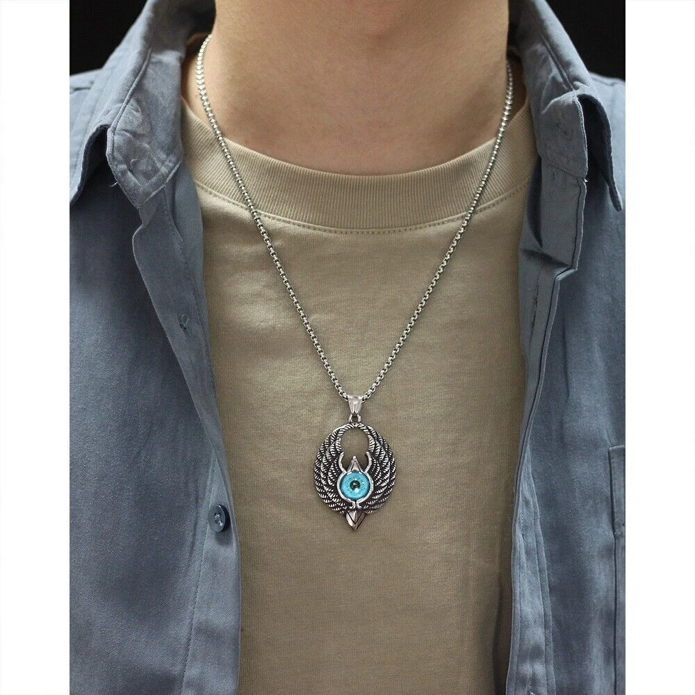Brand: Cy trendy Metal (Pendant): 316L Stainless Steel Metal (Chain): 316L Stainless Steel Stone: Turquoise Pendant Size: 49mm(H) x 34mm(W) Chain length: 60cm Total Weight: 40.5g The quality of our stainless steel jewelry We offer high quality rings and necklaces, We use GENUINE 316L Stainless Steel as material,The 316L stainless steel do not suffer corrosion,tarnish or rust when expose in wet environment, it is one of the best metal when choosing rust resistance rings and necklaces because of it's sufficiently reactive to protect itself from further attack by forming passive corrosion product layer Package include : 1 x necklace