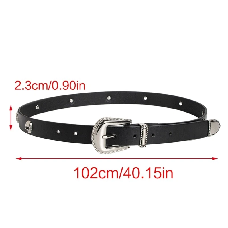Features: Standout from the crowd with our Skull Belt. Its unique skull pattern and decoration add edgy touch to any outfit. Crafted with durable alloy & PU material, this belt is built to last. The adjustable length ensures a perfect fit for different waist sizes. Perfect for individuals who want to showcase their Whether its for everyday wear or special occasions, this versatile belt complements any outfit. Pair it with jeans, leather jackets, or other clothing to create a trendy and look. Embracing your unique fashion with our Dark Skull Belt. It's the perfect accessory to express your individuality. Specifications: Material: PU Product Dimension: Approx. Length 102cm/40.15inch, width 2.3cm/0.9inch Color: Black Package Includes: 1x Women Waist Belt note: Please allow 1-2cm error due to manual measurement. please make sure you do not mind before you bid. Due to the difference between different monitors, the picture may not reflect the actual color of the item.