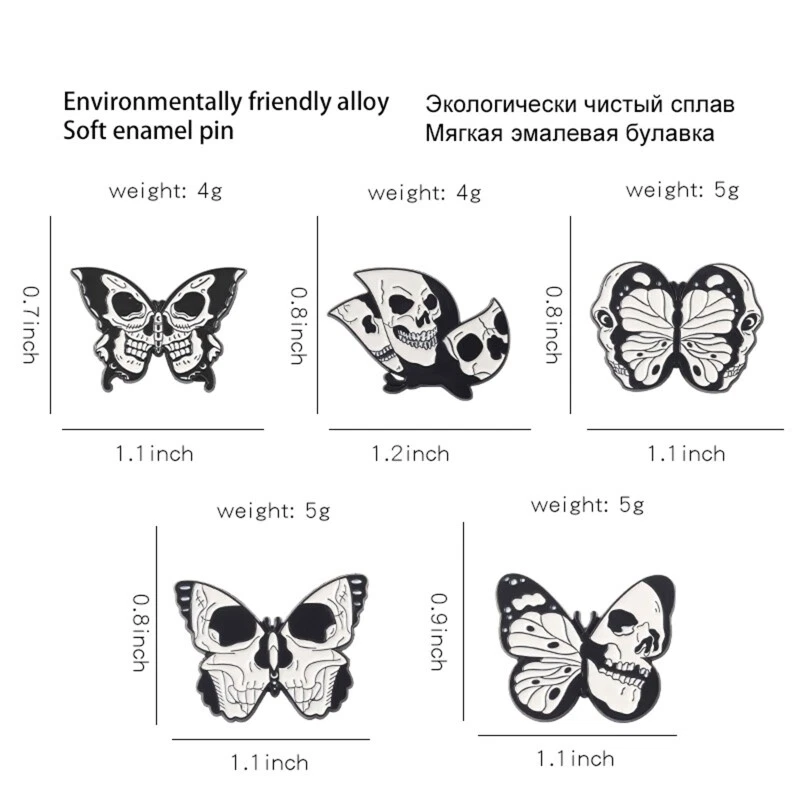Punk for Butterfly Brooch Cosplay Delicate Badge Pins Jewelry for Hat Shirt Lape Features: Easy it can be worn on a shirt collar, for lapel, on a hat or scarf and even added to a coat or your favorite bag,ect. Wonderful it can be good girlfriend, daughter, best friend, kids even yourself on special festival. Mulitple occassions, it is suitable for vintage, elegant, fashionable occassions, lovely wedding and party styling. Skull for you will be more fashion unquie in the crowd wear it. High alloy material, not easy fade ,durable Specifications: Alloy Size: As Shown Type: 5 Kinds Optional Package Includes: Package 3 4 5 Includes: 1x Brooch Package 6 Includes: 5x Brooch note: 1.Please allow 1-2cm errors due to manual measurement, make sure that you do not mind before you order. 2.Due to the difference between different monitors, the picture may not reflect the actual color of the item.