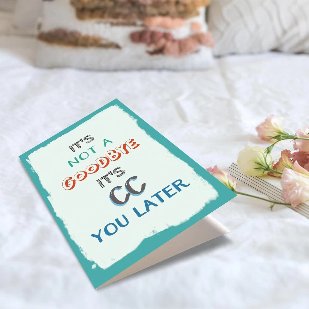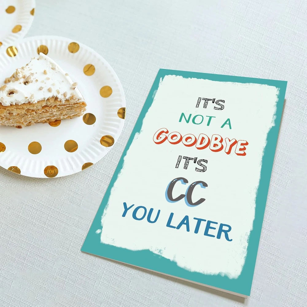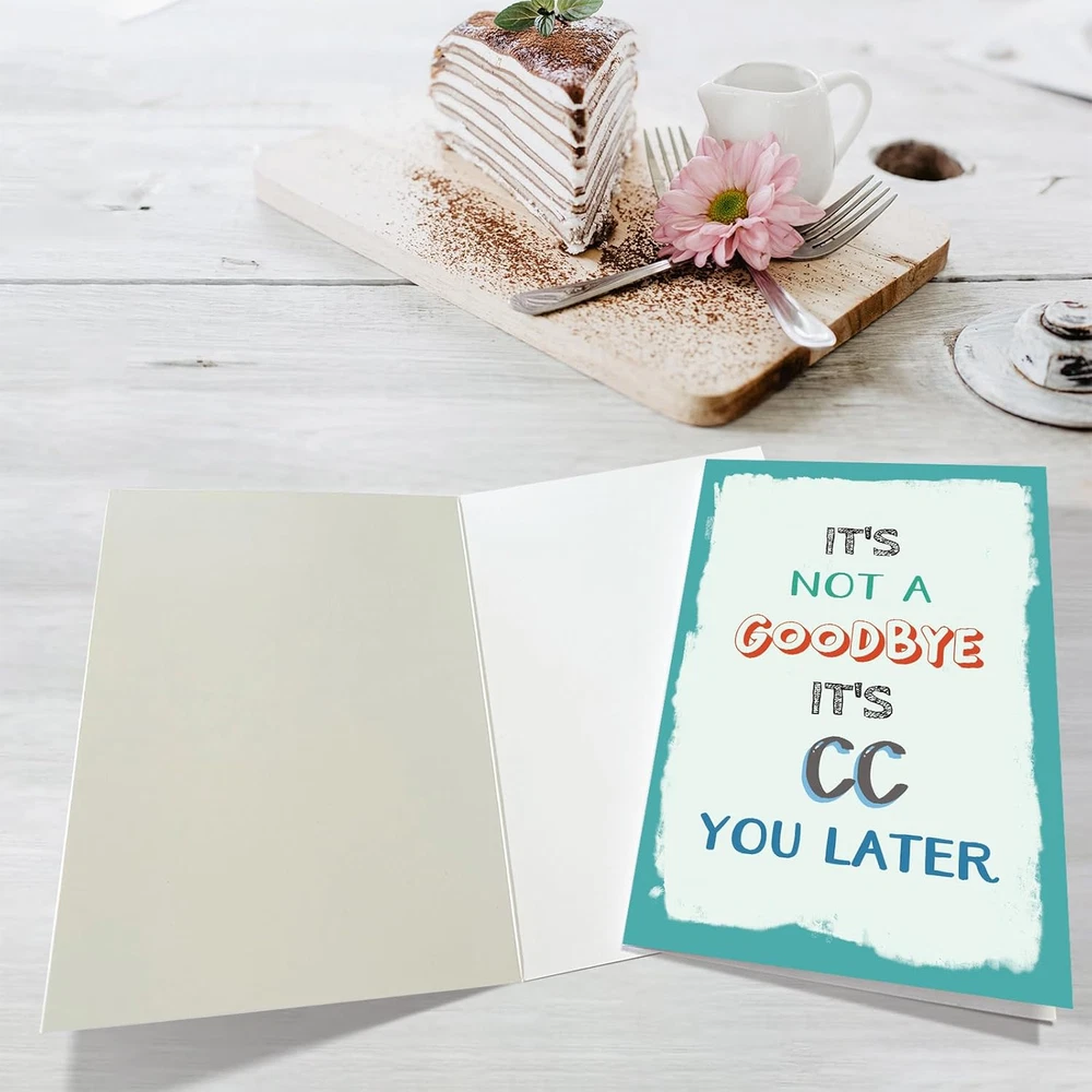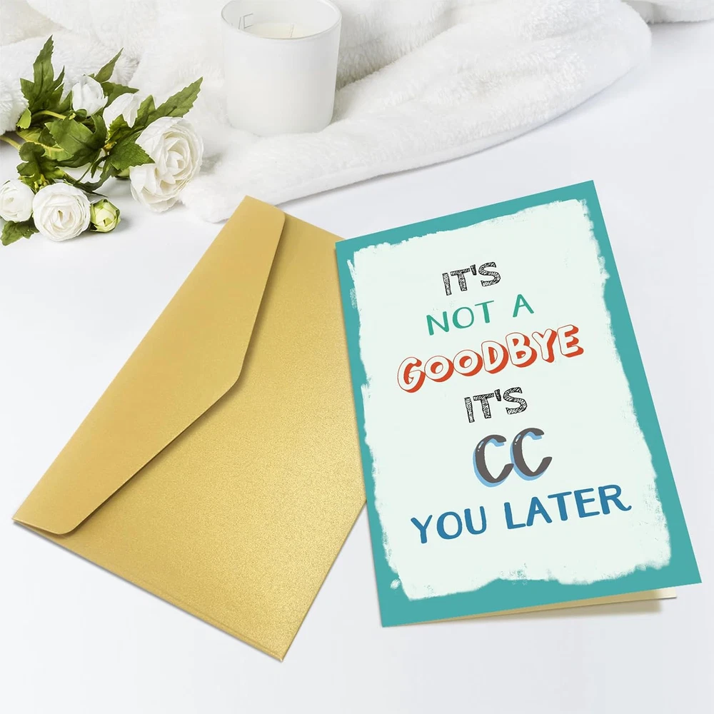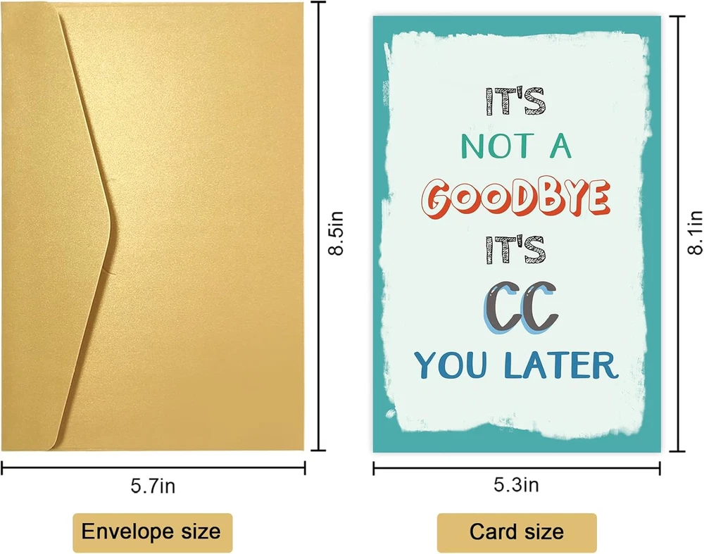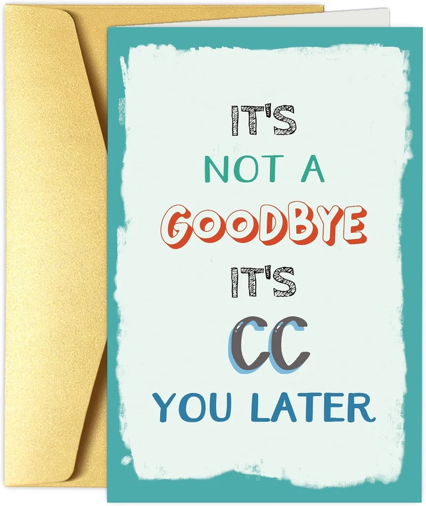 Store New Arrivals Add to Favorite View Feedback Contact Punny Farewell Card for Coworker, Leaving Gift for Boss Work Friend, Hilarious Retirement Card for Women Men, Funny New Job Card, Going Away Card Description Item model number OBK-CG-29-MP Number of Items 1 Color 29 Manufacturer Part Number OBK-CG-29-MP Item Weight 1.13 ounces Product Dimensions 8 x 5.3 x 0.2 inches It's not a goodbye. It's see you later. Parting is just around the corner, so express your feelings with this punning greeting card. Suitable for sending as a gift for a new job, promotion, farewell, I will miss you, goodbye, going away, good luck wishes for boss, manager, coworker, or anyone you want. Blank Inside: We leave a space for your own message, you can write something to express your deep thoughts. Size and Quality: This card folds to 5.3 inches by 8.0 inches and comes with a matching golden envelope. It is printed on premium, smooth, heavy card stock for easy writing on. If you have any problems, please feel free to contact us! Thank you for taking the time to read this listing. Policy on Product Sourcing and Fulfillment Dear Valued Customers, We would like to clarify an important aspect of our business operations to ensure transparency and trust in our relationship with you. Product Fulfillment: Fulfillment by Amazon (FBA): The products are stored in Amazon Fulfillment Centers. This storage solution ensures that the inventory is kept in a secure and climate-controlled environment, which helps maintain the quality and safety of the products. Efficient Delivery: Utilizing Amazon's fulfillment services allows us to leverage their robust logistics network to provide you with fast and reliable shipping. This means you receive your purchases in a timely manner with the added assurance of Amazon's trusted delivery systems. Customer Assurance: Quality Control: Every product is carefully selected and undergoes rigorous quality checks before being listed for sale. Our commitment is to provide you with high-quality items that meet your expectations. Secure Storage: Amazon's Fulfillment Centers are renowned for their high standards of security and efficiency. Your products are stored safely until they are shipped to you. Customer Support: Should you have any questions or concerns regarding your purchase, our customer support team is readily available to assist you. We are dedicated to ensuring your satisfaction with every transaction. We appreciate your business and are committed to providing you with a seamless and satisfactory shopping experience. Thank you for your trust and understanding. Sincerely, -Manager- Shipping Policy and Expectations Dear Valued Customers, We are committed to ensuring that your package arrives as quickly as possible. However, we kindly ask for your understanding regarding certain factors that may occasionally affect shipping times. Our Commitment: Prompt Processing: We strive to process and dispatch your orders promptly to minimize any delays. Reliable Shipping Partners: We work with reputable shipping companies to ensure your packages are handled with care and delivered efficiently. External Factors: While we do everything within our power to expedite your order, please note that some factors are beyond our control: Weather Conditions: Severe weather can impact shipping routes and cause delays. High Postal Traffic: During peak seasons, such as holidays, the increased volume of packages can lead to longer delivery times. Shipping Company Performance: The performance and schedules of shipping companies may vary, potentially affecting delivery times. We appreciate your patience and understanding in these situations. Rest assured, we are doing everything possible to get your package to you as soon as possible. Customer Support: If you have any questions or concerns about your order, please do not hesitate to contact us. Our customer support team is here to assist you and provide any necessary updates on your shipment. Thank you for your trust and continued business. Shipping Policy and Customer Satisfaction Shipping Information: Service Area: We offer shipping to the lower 47 states. Please confirm with us about the delivery date before completing your purchase. Thank you. Address Requirements: We do not accept P.O. Boxes. Please provide a physical address for delivery. Shipping Restrictions: Unfortunately, we are unable to ship items to the state of Ohio and California due to shipping agreements and restrictions. International Shipping: eBay International Shipping Hub: For shipping outside of the continental USA, we only use eBay's International Shipping Hub. The item is shipped to Illinois and then sent to the rest of the world. Duties and Taxes: International customers are responsible for all duties and taxes. Please continue to check out to calculate the shipping costs for your country. Inquiries: Messages regarding eBay's International Shipping Program must be directed to eBay exclusively. Customer Satisfaction: We try our very best to ensure every customer is completely satisfied. If there's a problem, please message us! We're happy to help. If you are happy with your purchase, we would really appreciate your positive feedback. Once positive feedback is left, our system will automatically leave positive feedback in return. Thank you for your business and for helping us maintain a positive and trustworthy marketplace. Return and Exchange Policy Dear Valued Customers, We strive to ensure that you are satisfied with your purchase. However, we would like to clarify our policy on returns and exchanges. No Returns Policy: No Returns: We do not accept returns. Please make your purchase carefully and review all product details before completing your order. Damaged or Non-Functional Items: Replacement or Exchange: If your item arrives damaged or not functional, we will be happy to replace or exchange it. Please contact us immediately with details of the issue, and we will assist you in resolving t