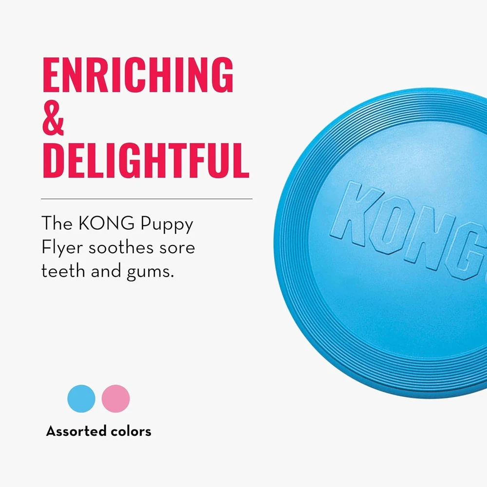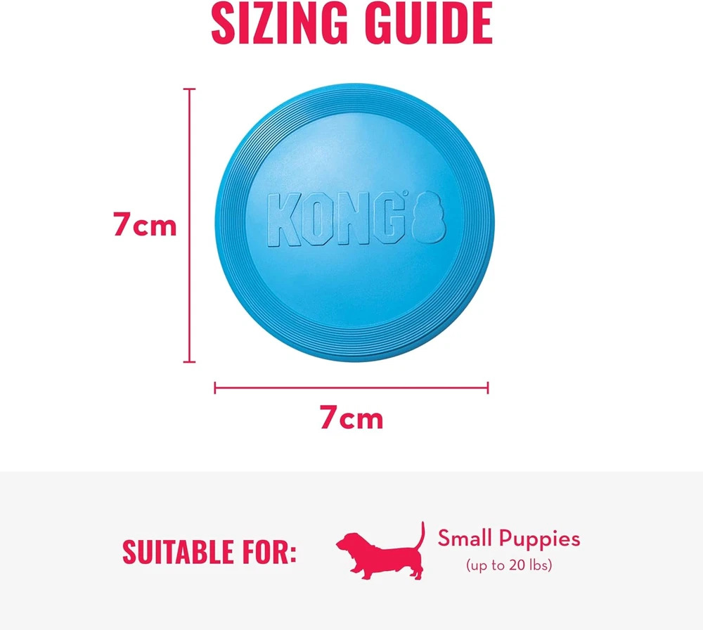 Durable KONG Puppy Rubber: This flying disc is made of forgiving, durable KONG Puppy Natural rubber, ensuring a safe, comfortable catch for your pet Flying Disc Toy with Dynamic Rebound: The KONG Flyer delivers a dynamic rebound if your dog misses the initial fetch, adding an extra layer of fun to playtime Dog Fetch Toy for Healthy Exercise: This puppy chase toy encourages your pet to stay active and supports their natural instinct to play Made in the USA: Globally sourced materials. KONG has been innovating since 1976 to enrich the lives of pets with the highest quality pet toys and treats. Covered by KONG's Satisfaction Guarantee KONG: Since not all toys are created equal, it’s always best to supervise your dog during play. Supervised play will help toys last longer and keep your dog safe. No dog toy is truly indestructible, so always remove the toy from playtime if damaged The Puppy Flyer is perfectly sized for a puppy and made with Kong’s special teething rubber formula for a soft catch. Safety, flexibility, and durability make Kong Flyers the world’s best rubber flying discs. The Puppy Flyer will help you and your puppy exercise.