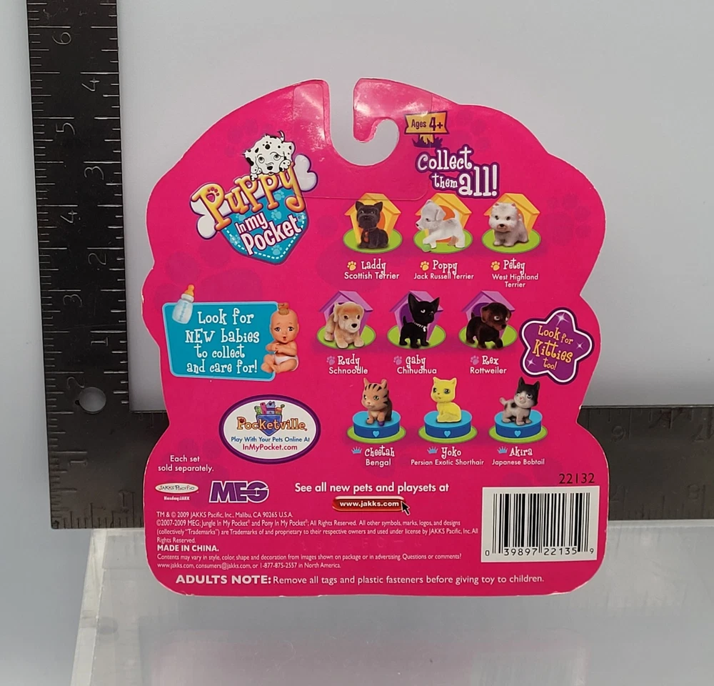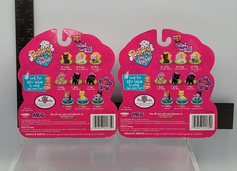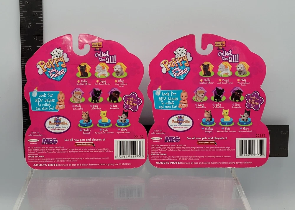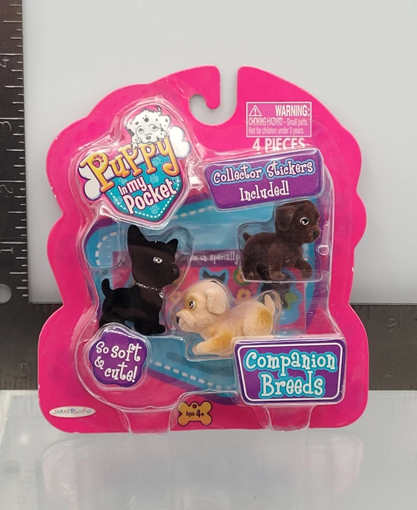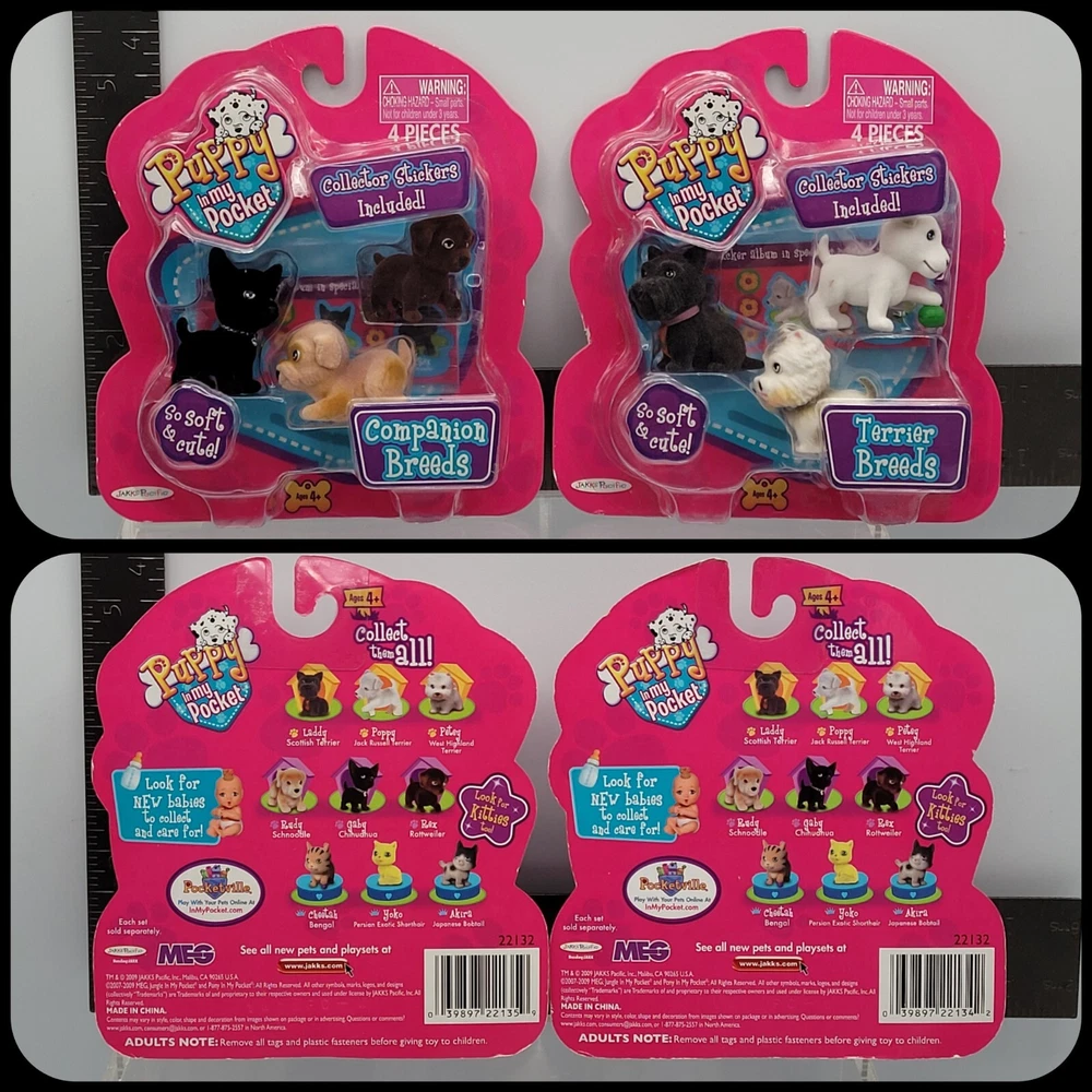 Puppy In My Pocket Dog Figure 6x Set Terrier + Companion Breeds 2009 Version NEW ✅️ ALL COLLECTIBLES COME SURFACE CLEANED AND SANITIZED, THEN REPACKAGED IN POLYBAG FOR ADDED PROTECTION ✅️ Item (outer packaging) comes cleaned and repackaged in polybag, ready to enjoy. Packs are factory sealed new from 2009. Includes: Terrier Breeds - 3 Dog figures + sticker book Companion Breeds - 3 Dog figures + sticker book Both packs are from the 2009 series. Cardboard backing comes in great shape with minimal wear. Each pack comes individually repackaged in a sealed polybag for added protection. Item ships from WI in sturdy packaging - item ships free within USA using USPS or equivalent service. International shipping is available, standard delivery rates apply. Please reach out with any questions, and thanks for looking! Lot #33172