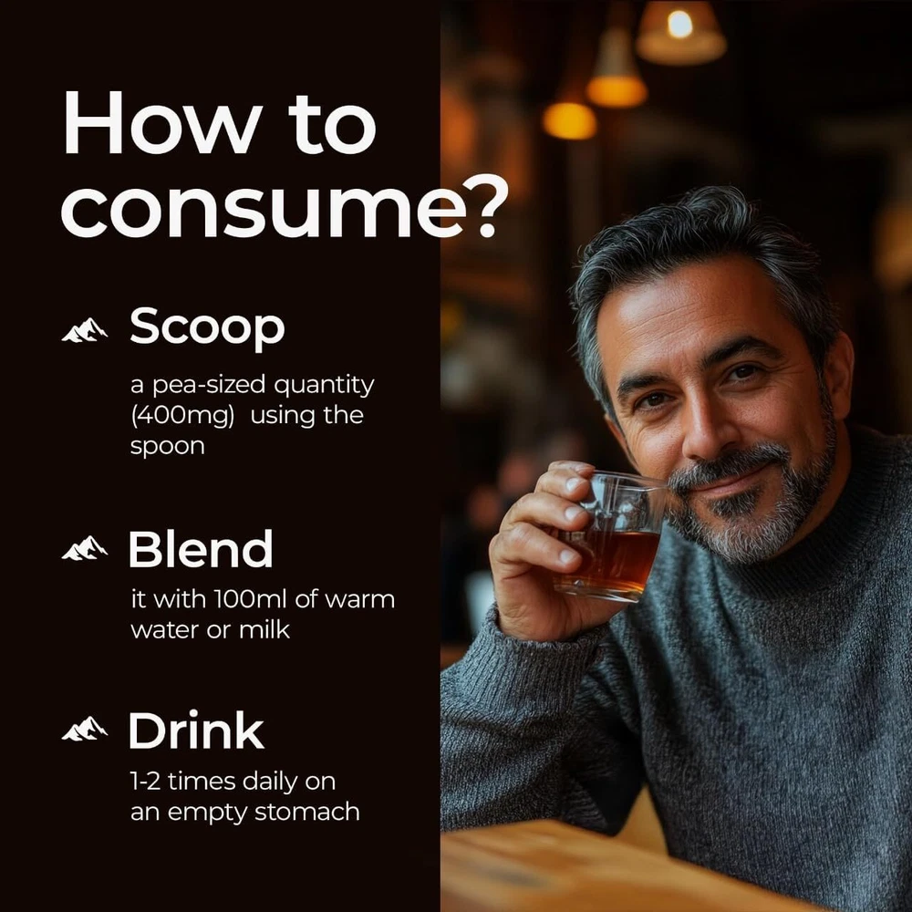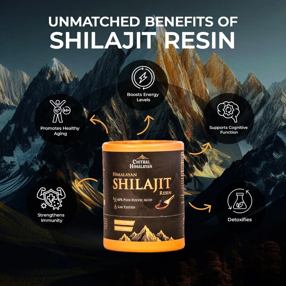 About this item Himalayan Shilajit Resin: Immerse yourself in the purity of freshly harvested Pure Himalayan Shilajit resin from the high altitudes of the Himalayan Gilgit Baltistan Mountains, exceeding 18,000 feet. Embrace the ancient Ayurvedic tradition with our Gold-grade natural Shilajit resin and Ashwagandha blend, rich in essential minerals, amino acids, Fulvic acid, and vitamins to promote balance, relief, and overall well-being. This pure Black Shilajit is ideal for those seeking the benefits of vital herbs Shilajit. Rich in Trace Minerals: Our Golden Organic Shilajit resin is a potent source of over 85 types of trace minerals, vitamins, and macro-nutrients. Enriched with Fulvic acid, Humic acid, and the adaptogenic benefits of Ashwagandha, it serves as an ideal supplement for both men and women. Experience all natural Shilajit Pure Himalayan Organic and Ashwagandha supplement blend, nourishing your body for increased mitochondria levels, energy generation, and overall wellness. Perfect as better Shilajit for women and Shilajit resin for men. Enhanced Well-Being Support: Elevate your overall well-being with our Organic Shilajit—a rapid solution for energy, relief, metabolism, immunity, muscle strength, and hormonal balance. Fulvic acid and Ashwagandha work together to amplify mineral absorption, fortify your immune system, boost energy levels, combat fatigue, and promote relaxation. This potent combination fosters cell regeneration, improved blood circulation, and enhanced focus, making it a perfect choice for both Himalayan resin for women and men. Authentic Shilajit: Embrace the authenticity of our Natural Shilajit resin—100% pure and genuine, free from fillers, additives, and hidden ingredients. We ensure premium quality through traditional non-chemical extraction and purification methods, preserving the original minerals, Ashwagandha's adaptogenic properties, and nutritional value. This pure Himalayan Shilajit resin is packaged with care, and each bottle includes a spoon for easy usage. Maximum Potency, Purity, and Adaptogenic Power: Experience the peak of authenticity and adaptogenic benefits with our products, delivering unparalleled potency in every serving of pure Shilajit for women and men. Say goodbye to low-grade, low-potency options. Our Shilajit Gold and Ashwagandha blend is carefully packaged in secure, light-protected glass bottles, ensuring freshness and uncompromised quality. › Product We offer a 30-Day Return Policy on items which you are not completely satisfied with. You have the option for a full-refund or an exchange of the item. No returns are available on items shipped outside of the US . Shipping We offer Free Shipping to the US and ship within 2 business days of payment, usually sooner. We use UPS express shipping. That's why your products are usually delivered within 3 days . Contact We try our very best to make sure every customer is completely satisfied. If there's a problem , message us! We're happy to help. 24/7 live chat available.