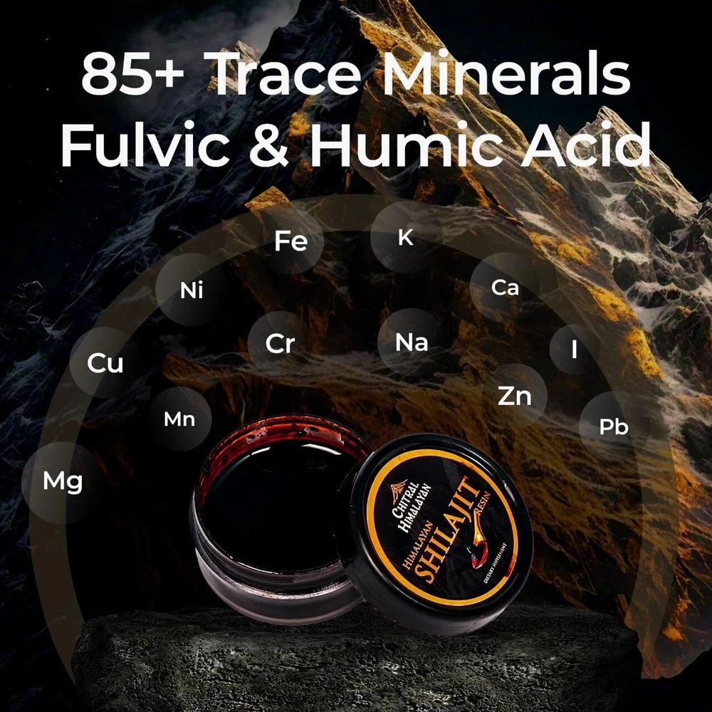 - Rich in Trace Minerals: Our Golden Organic Shilajit resin is a potent source of over 85 types of trace minerals, vitamins, and macro-nutrients. Enriched with Fulvic acid, Humic acid, and the adaptogenic benefits of Ashwagandha, it serves as an ideal supplement for both men and women. Experience all natural Shilajit Pure Himalayan Organic and Ashwagandha supplement blend, nourishing your body for increased mitochondria levels, energy generation, and overall wellness. Perfect as better Shilajit for women and Shilajit resin for men.