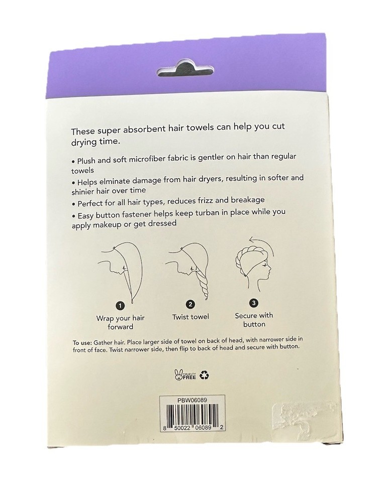 Pure Beauty Works Hair Towels Set Of 2 Microfiber Towels Purple & White NEW π Reduces Drying Time Soft & Lightweight Easy to Use