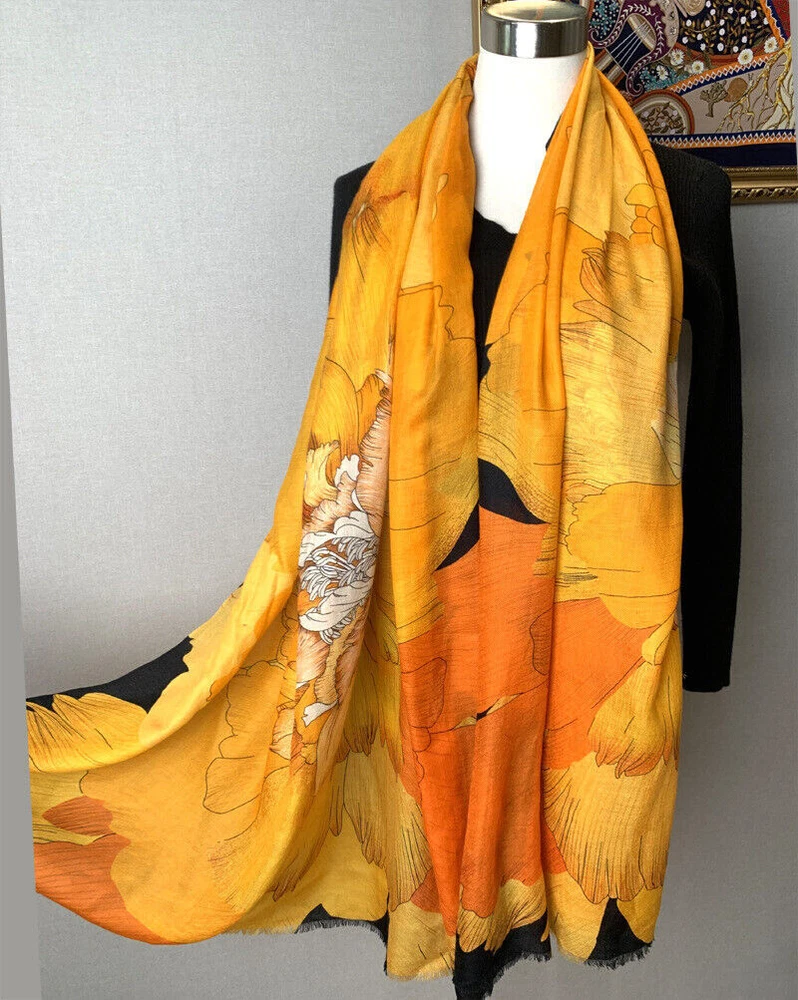 Pure 14 Momme Twill Silk Scarf Floral Print Square Shawl 35 Inch Wrap Bandanna