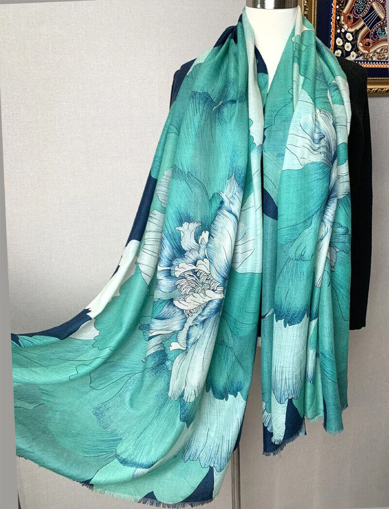 $ 18.9470% Cashmere 30% Silk Jewelry Print Square Scarf Hand Rolled Shawl 135cm