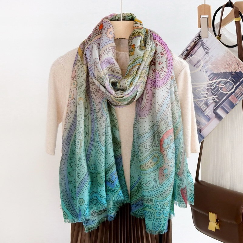 $ 9.19Double-Sided 100% Silk Vintage Green Floral Striped Long Scarf 150x15cm for Women