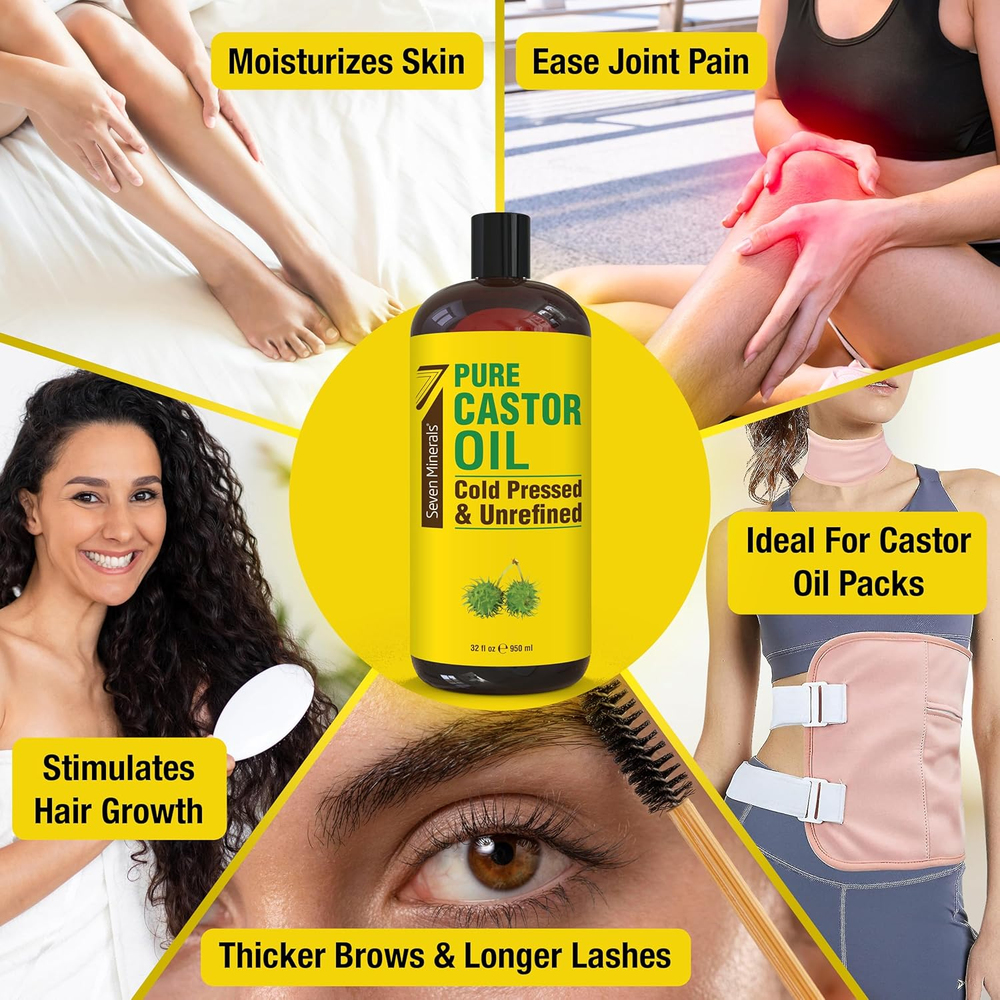 Pure Cold Pressed Castor Oil - Big 32 Fl Oz Bottle - Unrefined & Hexane Free - 1
