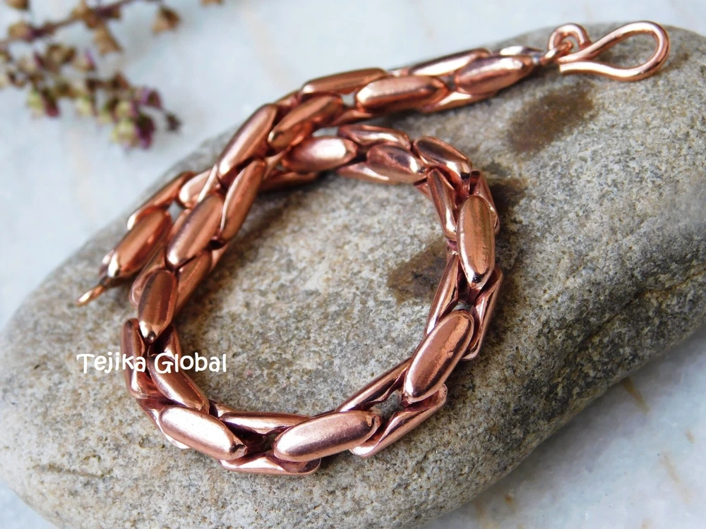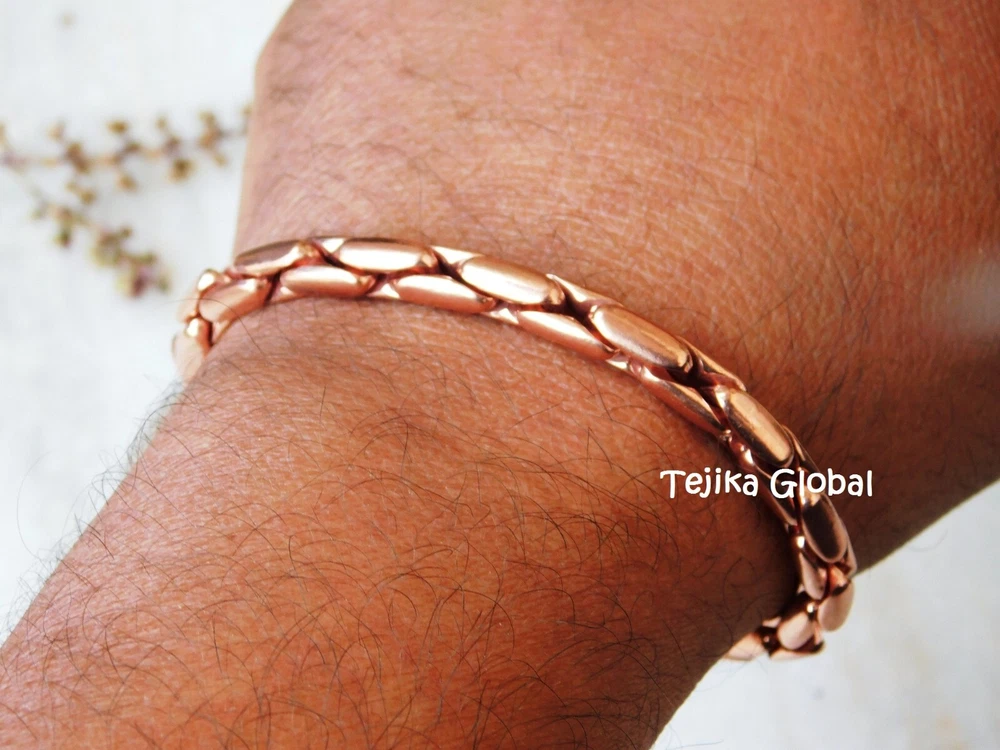 Copper Arthritis Heavy Bracelet Link Chain handmade Energy Pain unisex bracelets Copper chain bracelet Handmade chain Bracelet Length : 6, 6.5, 7, 7.5, 8, 8.5, 9, 9.5, 10 Inch This pure solid copper bracelet is an ideal choice for those who are looking for a stylish and trendy accessory. It features an arthritis chain link design that is perfect for both men and women. The bracelet is made of high-quality copper metal that is known for its antioxidant and anti-inflammatory properties, making it a great addition to your jewelry collection. The bracelet comes in a beautiful copper color that is sure to complement any outfit. It is perfect for both casual and formal occasions. The bracelet is designed to be worn on any finger and is available in different sizes to ensure a comfortable fit. Get your hands on this stunning piece of jewelry today and add a touch of elegance to your wardrobe.