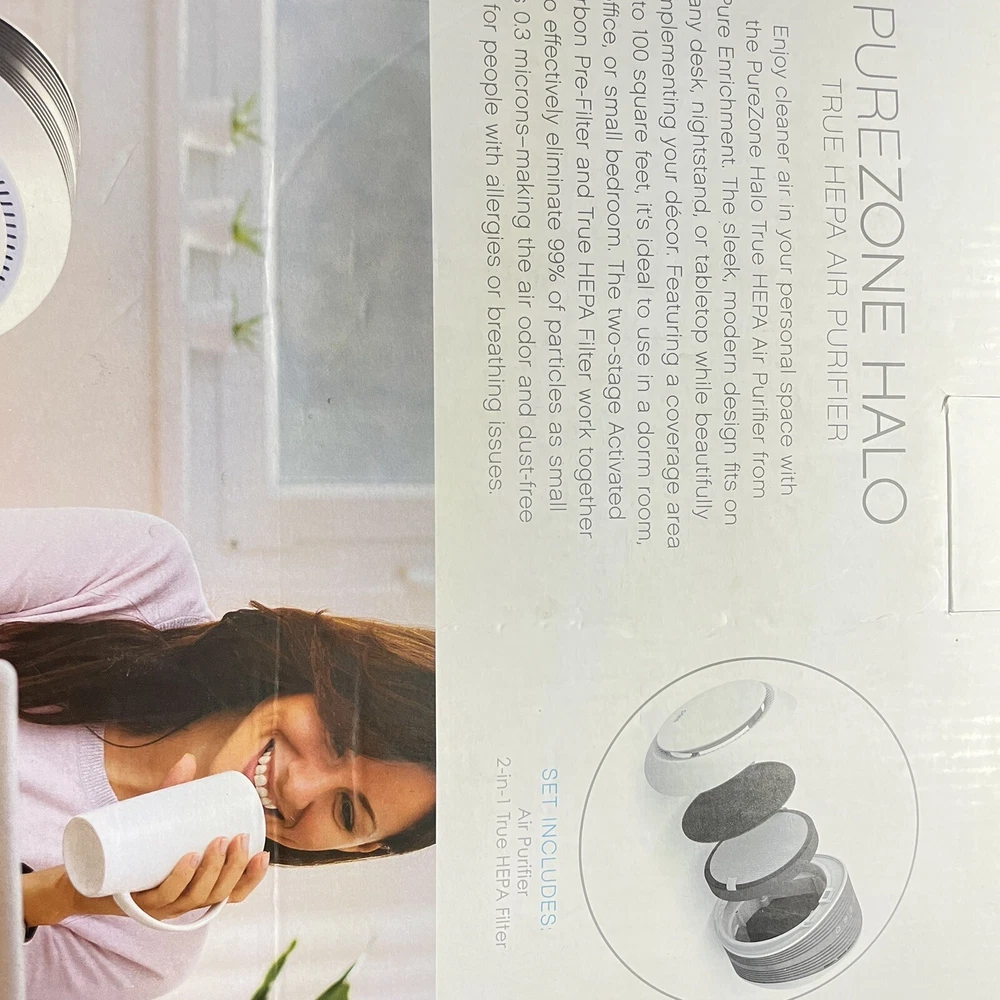 Pure Enrichment PureZone Halo 3 Fan Speed Air Purifier 2 In 1 True HEPA - NEW.