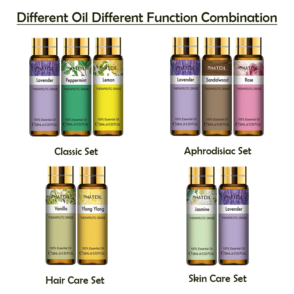 Sub-Type: Essential Oils Type: Essential Oil UPC: Does not apply Year Manufactured: 2024 Features 2: Essential oils for Diffuser, Diffusor, Burner, Humidifier Style: Modern Features 3: 100% Pure Essential Oils, Natural Oils, Therapeutic Grade Oils Manufacturer Warranty: 1 Month Labels & Certifications: FDA Approved Country/Region of Manufacture: China gtin13: Does not apply Features 4: for Aromatherapy,Massage,Hair care,Skin care,Sleep,Bath,Soap,etc Number in Pack: 9 Department: Unisex Colour: Black Model: Pure Essential Oil Container Type: Box, Glass Bottle MPN: Does not apply Material: Eucalyptus, Jasmine, Lavender, Lemon, Peppermint, Rose, Sandalwood, Vanilla, Ylang Ylang Features: Diffuser Scent: Eucalyptus, Jasmine, Lavender, Lemon, Peppermint, Rose, Sandalwood, Vanilla, Ylang Ylang Volume: 10 ml Product Line: PHATOIL Essential Oils Brand: PHATOIL For: Aromatherapy Containers: Glass Bottle 10 ml Number of Settings: 1 Color: Black