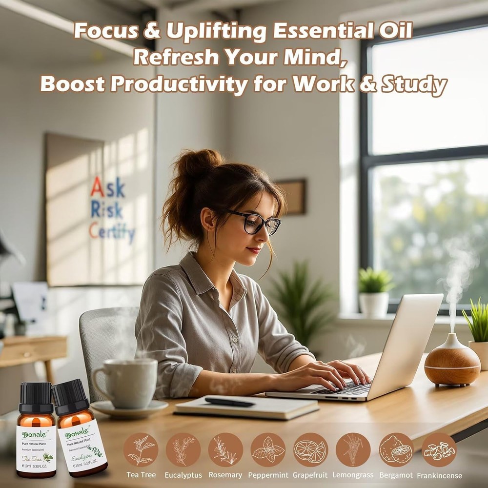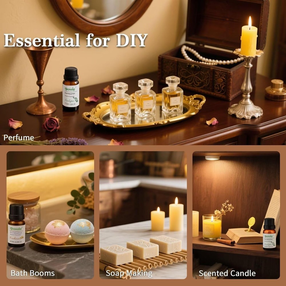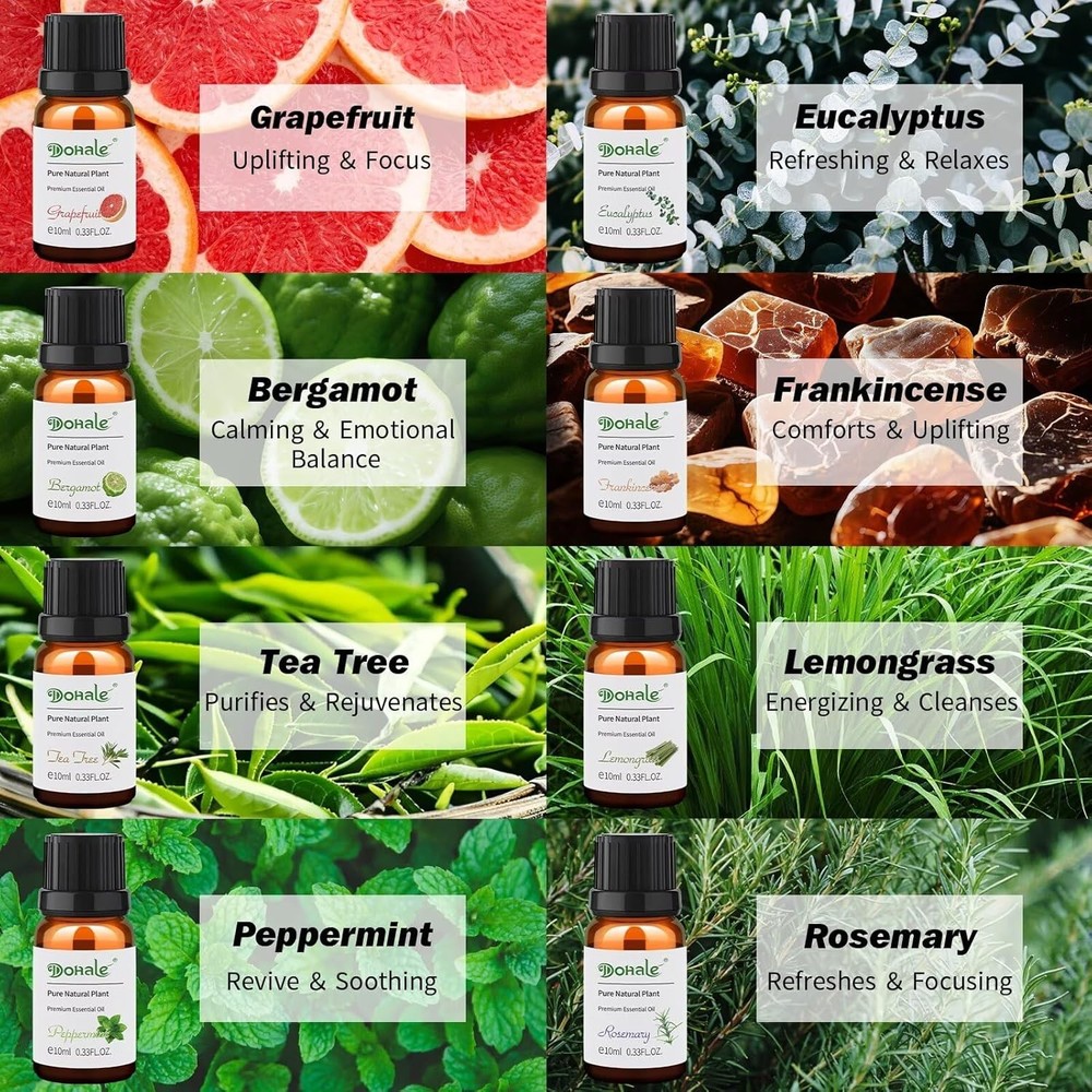 gtin13: Does not apply Type: Essential Oil Volume: 10 ml UPC: Does not apply Container Type: Box, Glass Bottle Department: Adults, Men, Women Number in Pack: 8 Brand: Dohale Seasons: All Seasons Features: Diffuser, Odor Eliminator, Organic