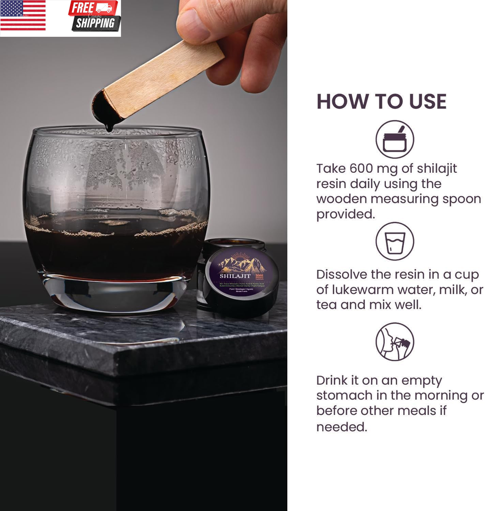 Shilajit Pure Organic Himalayan Shilajit Resin:Gold Grade Pure Shilajit for Men and Women, Pure Natural Shilajit with 85+ Trace Minerals & Fulvic Acid for Energy, Immune Support, 50 Grams Shilajit Pure Organic Himalayan Shilajit Resin:Gold Grade Pure Shilajit for Men and Women, Pure Natural Shilajit with 85+ Trace Minerals & Fulvic Acid for Energy, Immune Support, 50 Grams Shilajit Pure Organic Himalayan Shilajit Resin:Gold Grade Pure Shilajit for Men and Women, Pure Natural Shilajit with 85+ Trace Minerals & Fulvic Acid for Energy, Immune Support, 50 Grams Unit Count 1.69 Fluid Ounces Primary Supplement Type Shilajit Number of Items 1 Product Benefits Immune Support Item Weight 5.3 Ounces Age Range (Description) Adult Package Information Bottle Flavor Unflavored Item Form Gel Package Dimensions 2.32 x 2.28 x 1.93 inches; 5.3 ounces Shipping Fast shipping is very important for us. Our standard US shipping service is FREE. Your order will be shipped within 2-3 business days upon full payment received. Your order will be delivered within 2-3 business days after the handling time. We only ship to the confirmed PayPal address. We reserve the right to cancel any order for any reason at any time. We are not responsible for undeliverable addresses. Returns and payment We offer a 30 days return policy from checkout winning date. We allow only PayPal as payment method FeedBack Your feedback very important to us, after you get your package and you are satisfied with our service please leave us positive feedback If you have any problem with your order / any questions please before leave any type of feedback For any questions, using eBay contact system Please visit our eBay store to check out other items for sale! Thank you for shopping at our store.