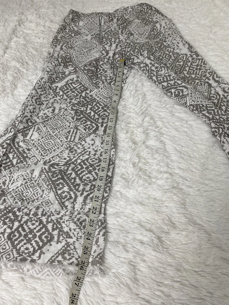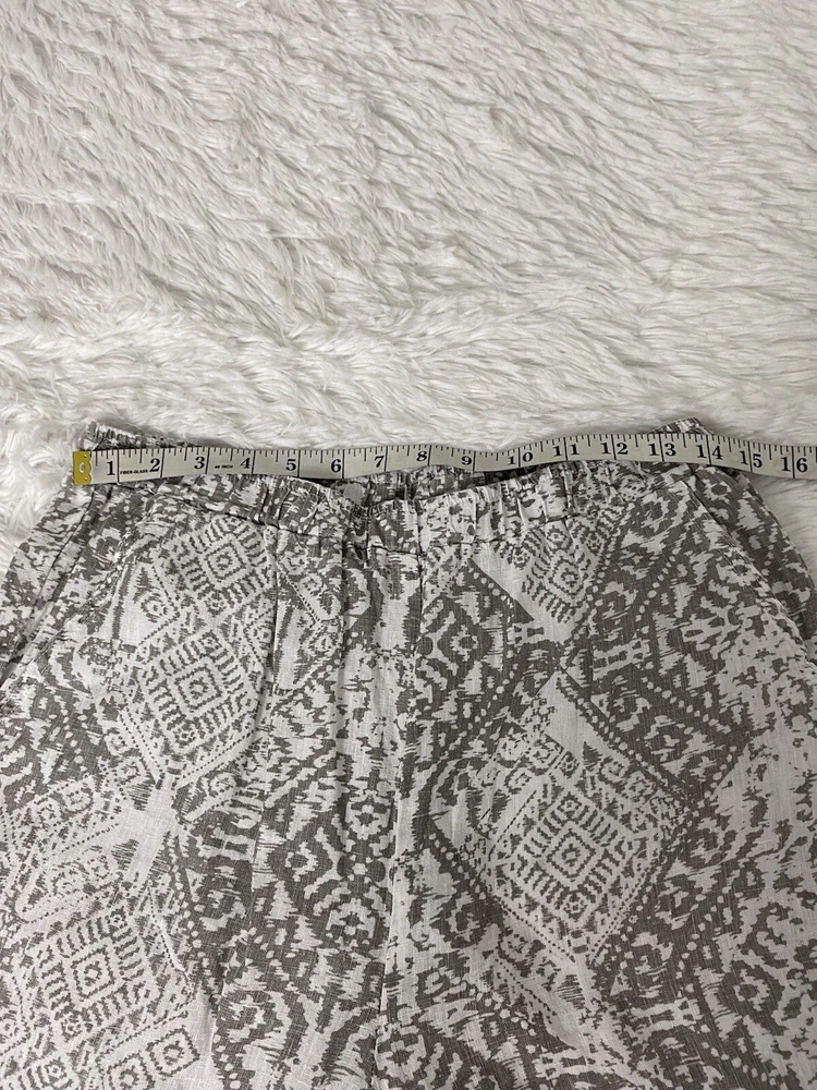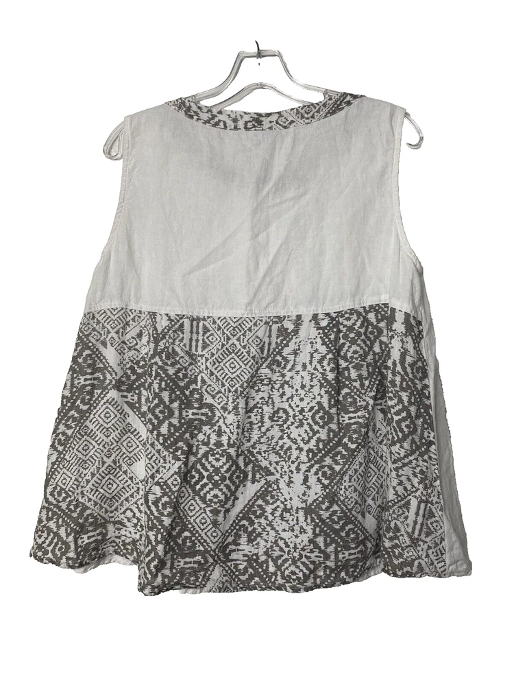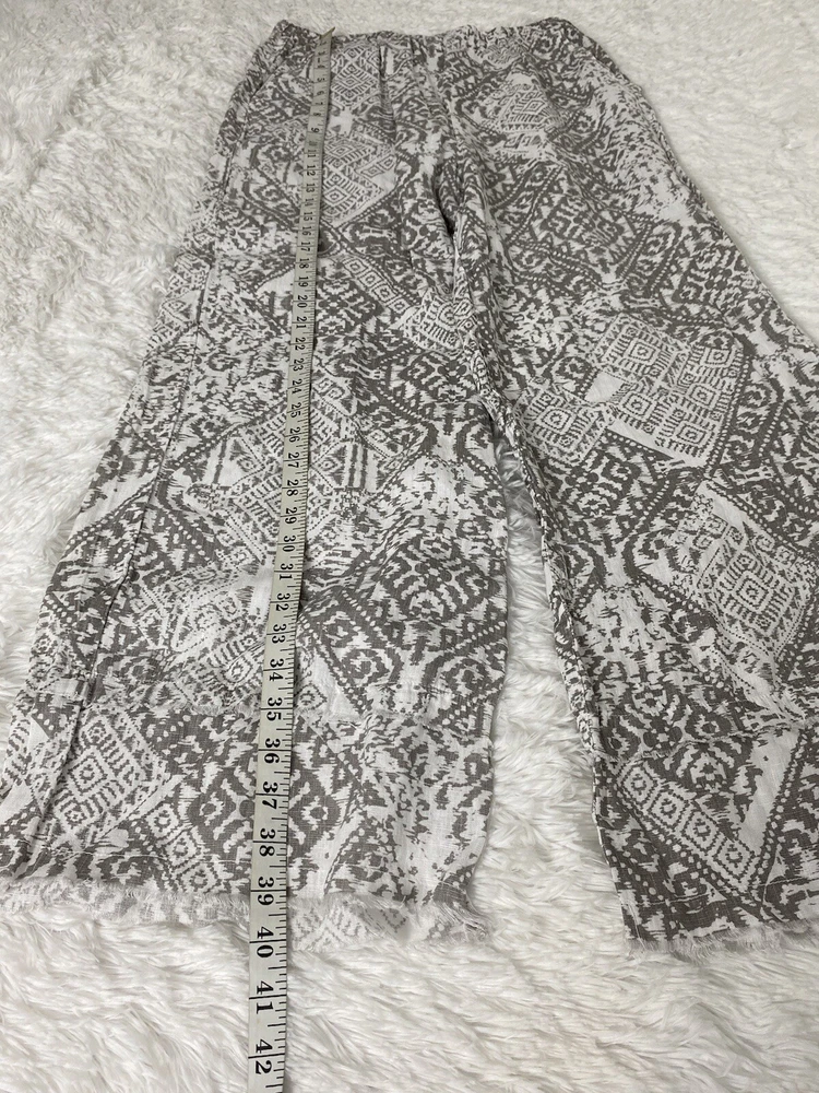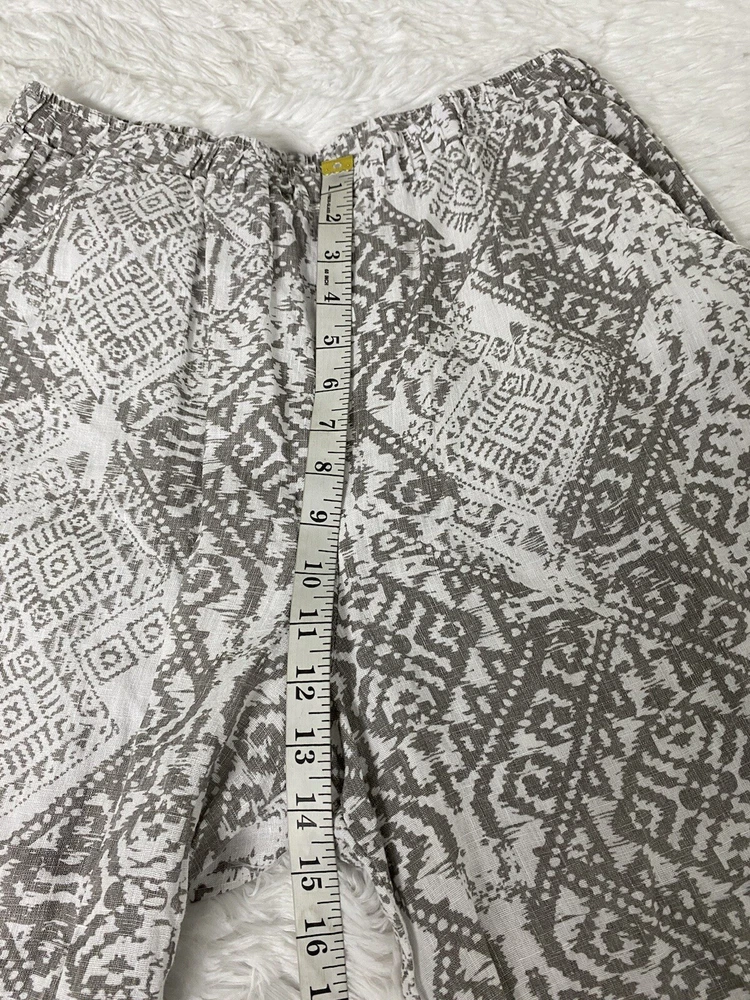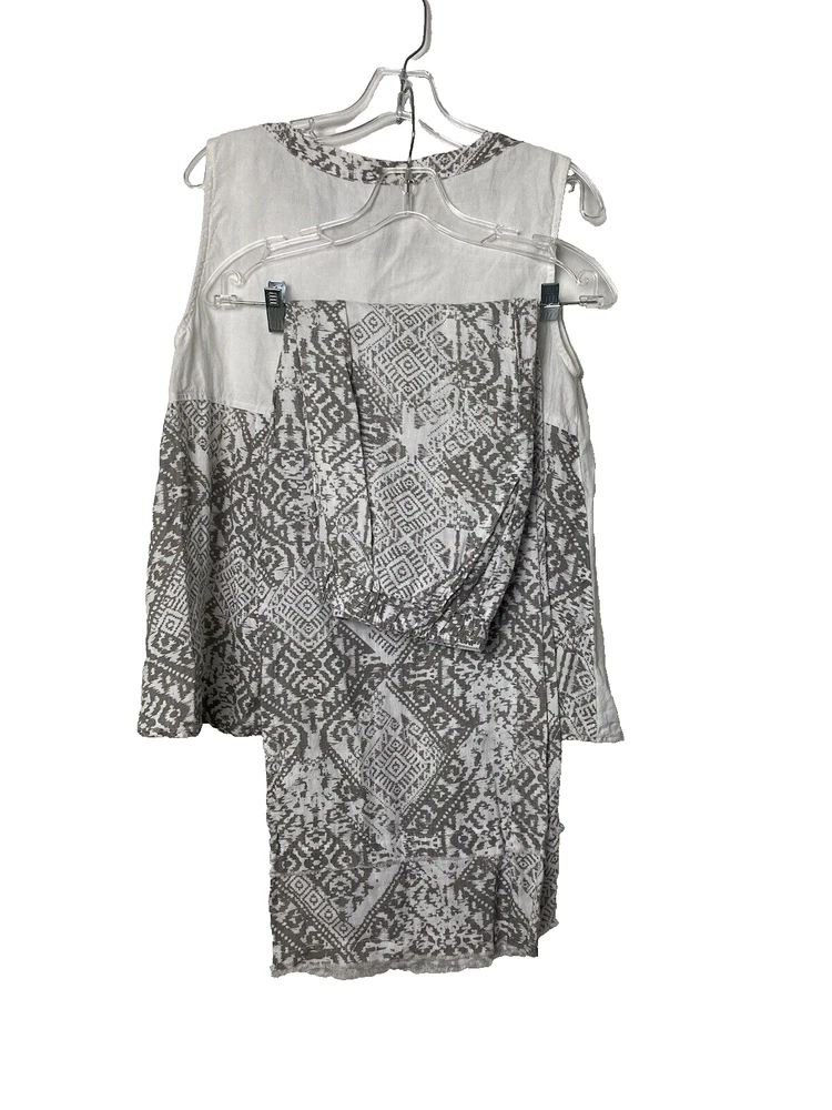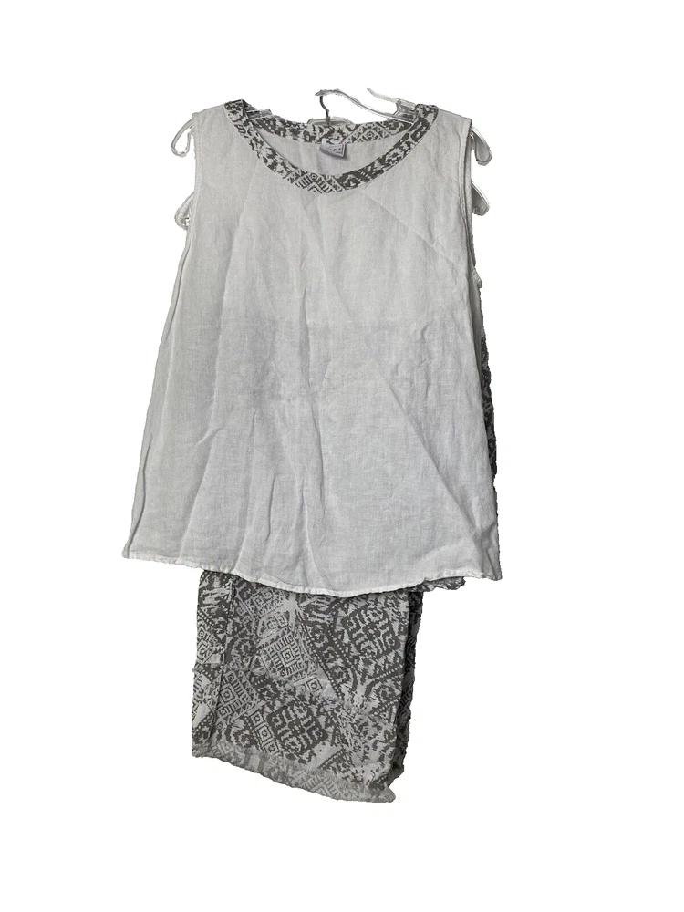 Pure Match 100% Linen 2 Pieces Women Set Wide Leg Pants swing Blouse Boho Size M Gray white Diamon pattern row hem details on pants sleeveless elastic waist has pockets pre owned in excellent condition beach fit relax summer see pictures for more details and accurate measurements