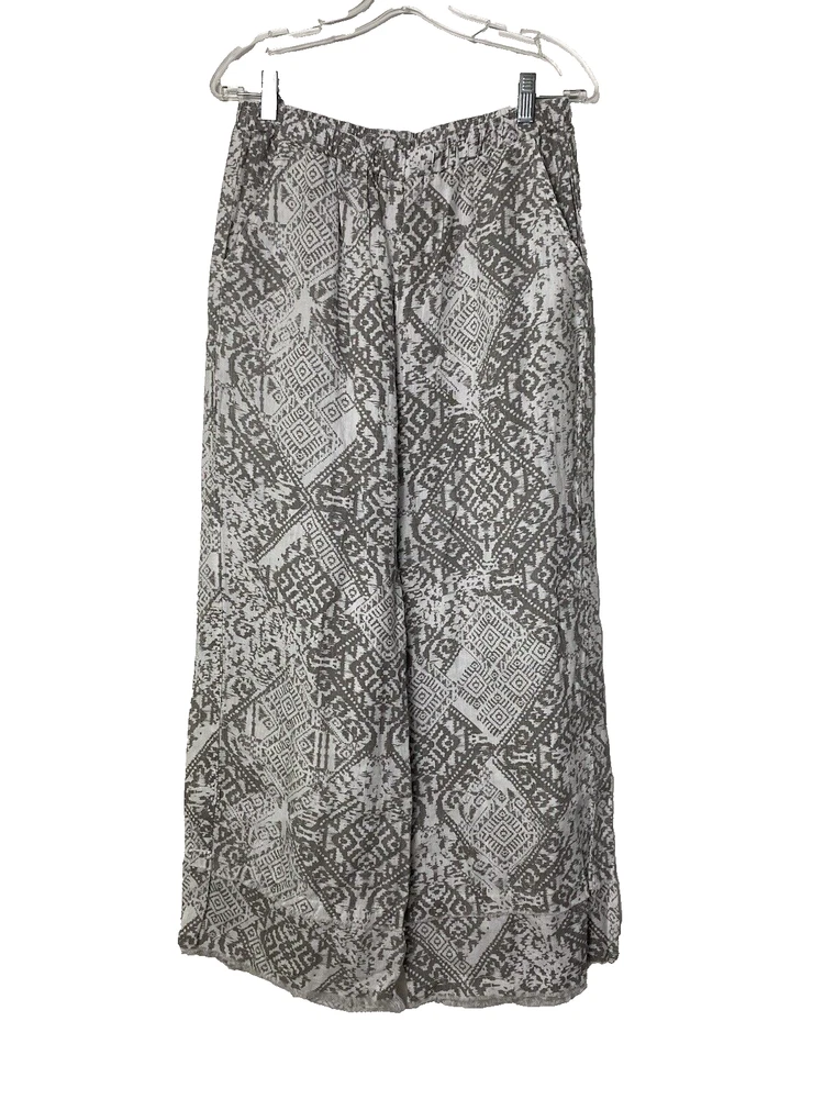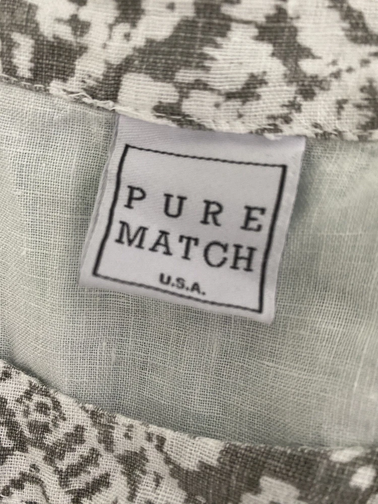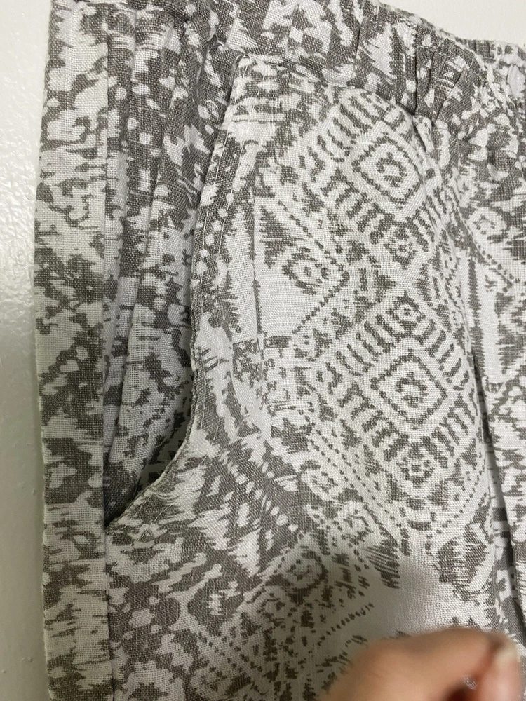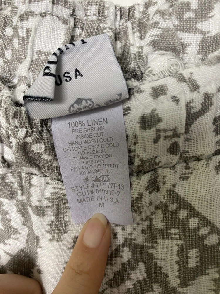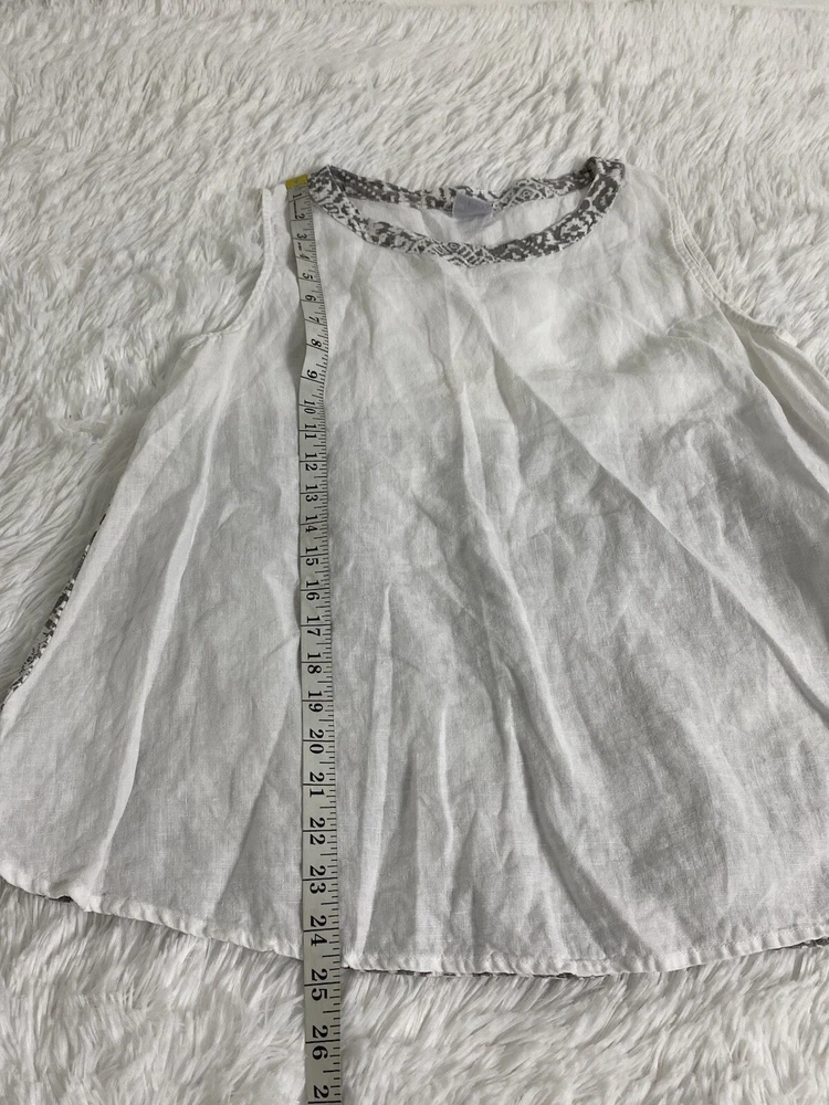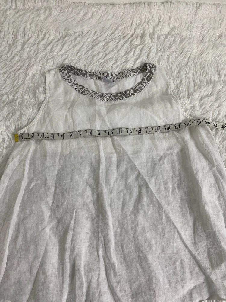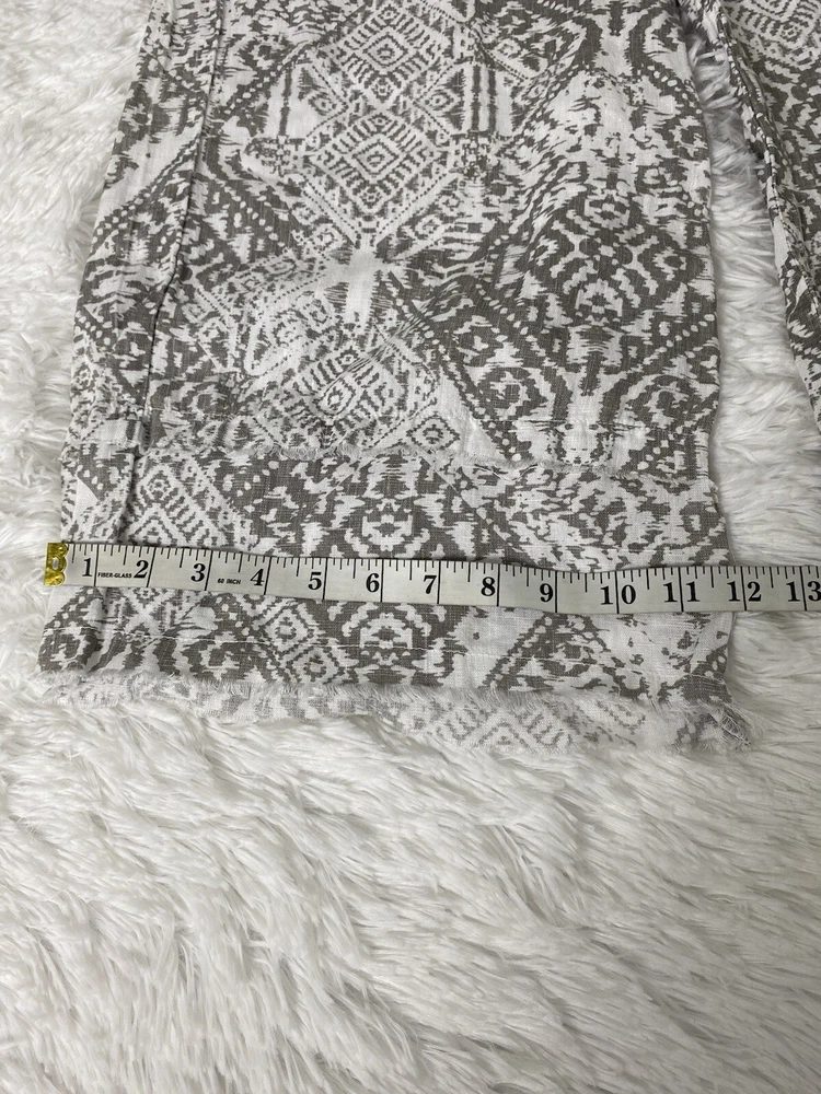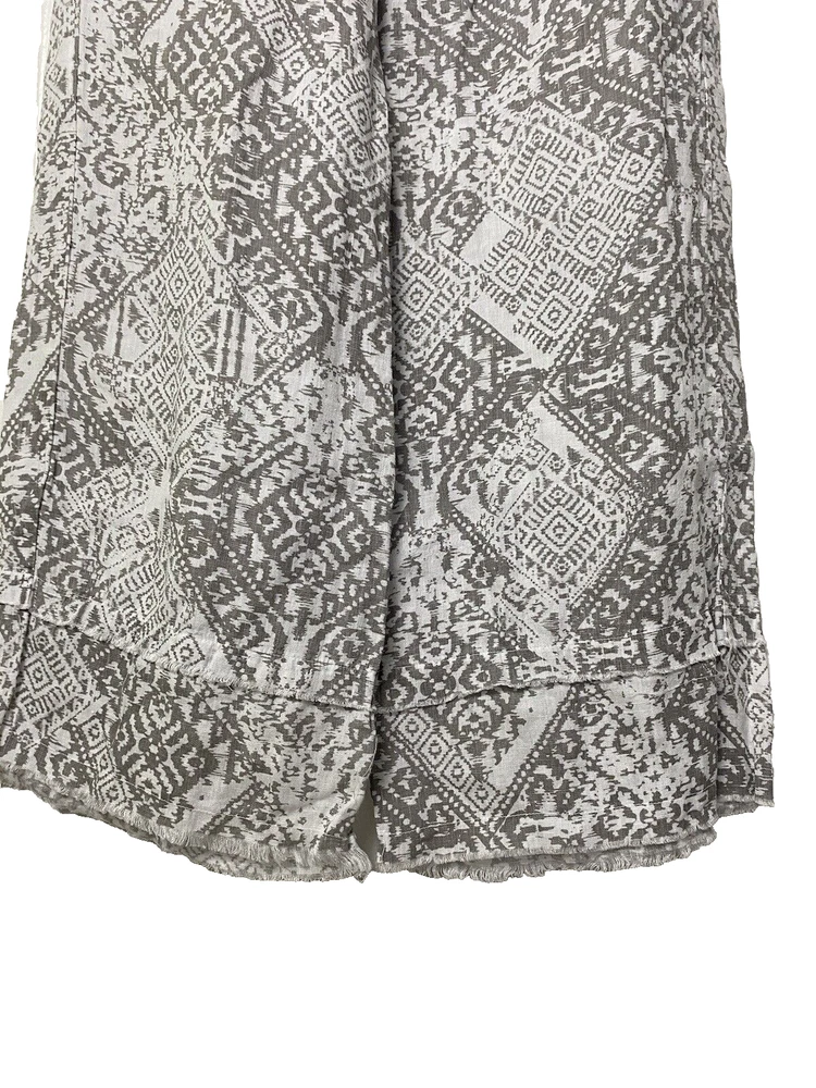 Pure Match 100% Linen 2 Pieces Women Set Wide Leg Pants swing Blouse Boho Size M Gray white Diamon pattern row hem details on pants sleeveless elastic waist has pockets pre owned in excellent condition beach fit relax summer see pictures for more details and accurate measurements