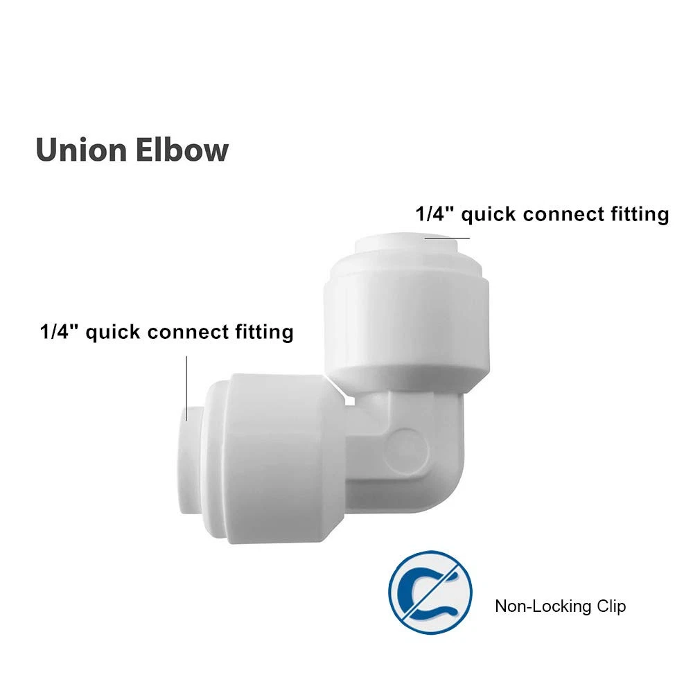 What is it? Our hose elbow 90 degrees are made of Polypropylene,It adopts Push to connect technology, which allows users to connect and disconnect quick and easy without the need of any other tools.It fits standard RO Tubing 1/4 inch , polyethylene tubing,Copper, CPVC, PEX,1/4 Poly Tube and PVC Water pipe or hose/ice pipe Where to use it? Applications include RODI system,Irrigation System, refrigerator ice maker water line kit, coffee machine etc.This 1/4 OD Tubing fittings are perfect for a water line going to your fridge or your water line under your sink for a filtration system.This will take the headache out of an under counter water filter installation How to use it? Just pop in your 1/4 Water tubing into each end, pushing until it won't go in. To remove, just push in the outer circle on each end of the tube fittings and pull right out. You need to make sure the 1/4 tubing is cut squared to insure no leaks. Be sure you cut the Water tubing even and straight, without crimping it. Then insert straight, and all the way into the quick connect water hose fittings. If it's crooked, or not inserted all the way, or crimped, it may leak What you will receive? 1/4" 90 hose elbow x 10 ★WATER&FOOD USE MATERIALS: Our RO Fittings are made from safe,non-toxic materials.Water hose 90 degree elbow are widely used for Countertop/Undersink RODI system,plumbing or drip irrigation System etc ★SIZE&TUBE COMPATIBLE WITH:1/4" Quick Connect fitting Size;Fits standard 1/4 RO Tubing used on most Water purification systems ( check your tube size carefully before order) ★EASY INSTALLATION: New generation Non-Locking Clip technology offers an easy DIY installation without tools required, Just Push in to Connect. ★FUNCTION&QUALITY: A quick connect fitting is a coupling used to provide a fast, make-or-break connection of fluid transfer lines. Operated by hand, quick connect fittings replace threaded or flanged connections, which require wrenches. A broad of Sizes covers a broad scope of applications. Our quality system ensures a superior level of product quality. ★Notes: Our Push Lock Fittings are reusable, it can be installed without Locking clips. it also can be used with Locking clips ( Search B07WXRMQPF and B07WYMZQBC to buy).