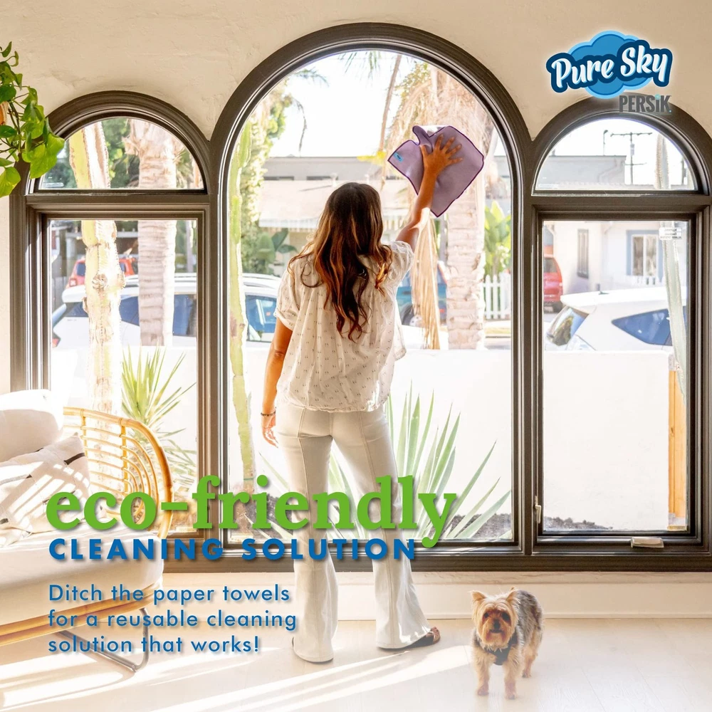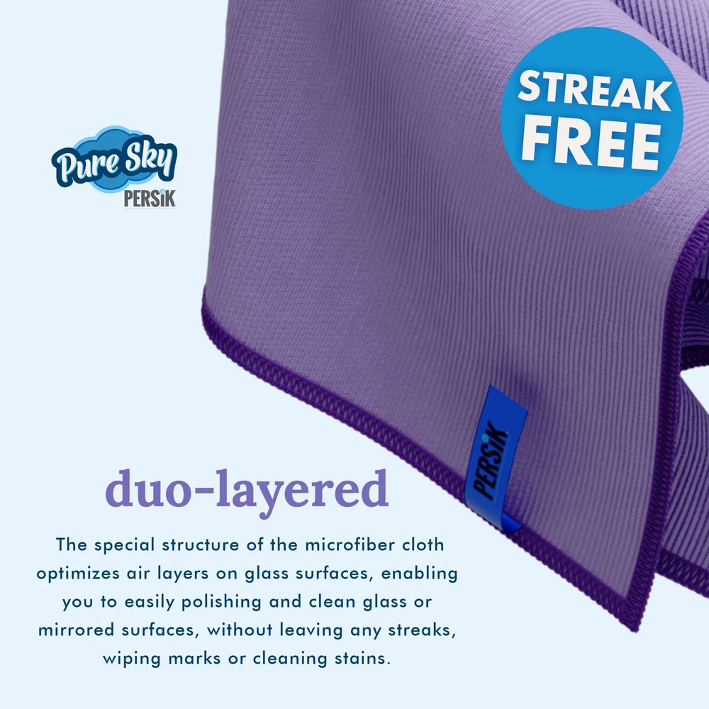 JUST ADD WATER - NO DETERGENTS NEEDED – No Chemicals, Window Glass Cleaning Cloth cleans with only water, without dangerous ingredients that can harm you - Works like magic, Much Better than Norwex, e-cloth or Nano towel, You Will Be Amazed MONEY SAVER – Reduce your need for disposable cleaning sponges, cleaning chemicals, and paper towels using this microfiber towel, this glass cleaner will save you a lot of money each month STREAK FREE - The special duo-layered structure of the Pure-Sky window cleaning cloth microfiber towel optimizes air layers on glass surfaces, enabling you to easily polishing and clean glass or mirrored surfaces, without leaving any streaks, wiping marks or cleaning stains, which is one of the major problems with existing window glass cleaning cloth BEST GLASS CLOTH CLEANER – Pure-Sky Window Cleaner is made of patented state-of-the-art composite Ultra Microfibers, consisting of multifilament yarns that are made of more than 1,000 strands per yarn, allowing you to clean nearly any surface using JUST WATER WHERE TO USE - window cleaning cloth, glass cleaning cloth, mirror cleaning cloths, car window cleaner, shower glass cleaner, also Stainless Steel, and Chrome