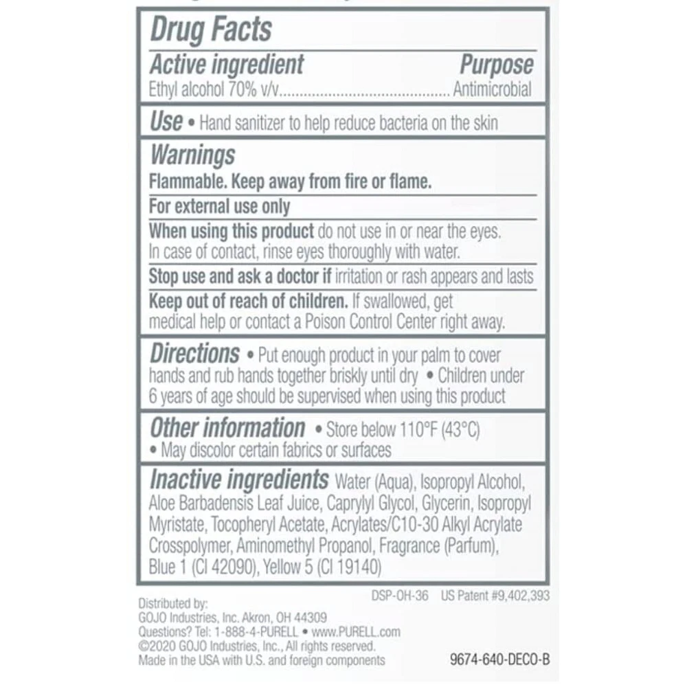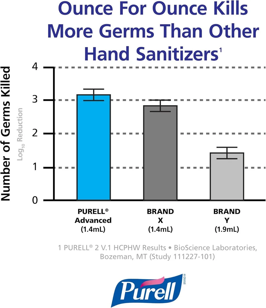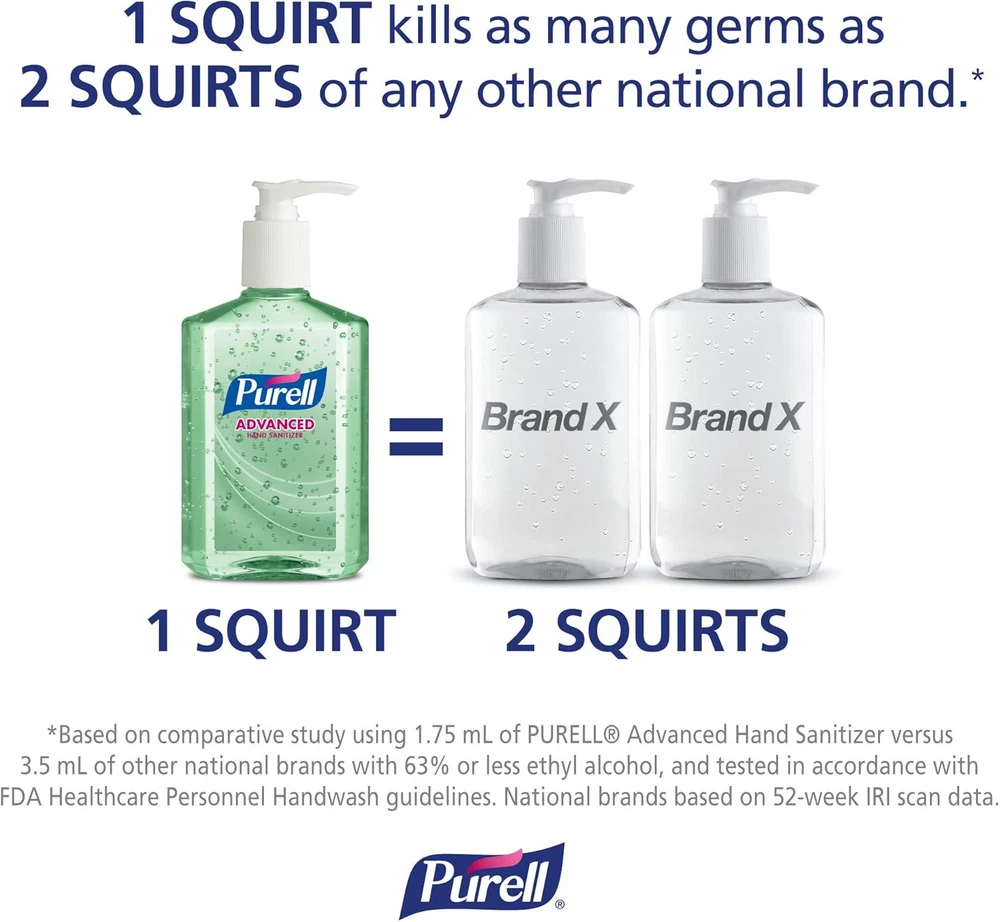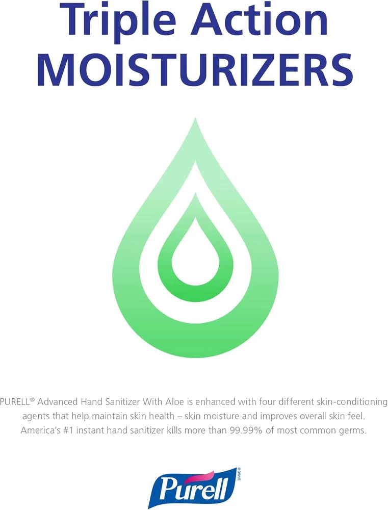 Product Description Purell Advanced Hand Sanitizer Gel, Advanced Refreshing Aloe, 2 Ounce (Pack Of 10) The convenient PURELL Advanced Instant Hand Sanitizer with Aloe, is an antimicrobial gel that contains 70 percent ethyl alcohol to help reduce the number of germs on hands, and four moisturizers to help keep skin hydrated. No rinsing with water or drying with towels is needed. Alcohol-based hand sanitizers can quickly reduce the number of germs on hands, but do not eliminate every kind of pathogenic microorganism. The hand sanitizer meets U.S. Food and Drug Administration (FDA) healthcare personnel hand-washing requirements. It's perfect for on-the-go uses when traveling outside of the home, and fits neatly in purses, backpacks or briefcases. PURELL is the No. 1 instant hand sanitizer, killing 99.99% of most common germs that may cause illness and works in as little as 15 seconds. No water or towels needed. It is specially formulated with moisturizers to leave hands feeling soft and refreshed. This convenient display's contents are specially formulated with moisturizers to leave hands feeling soft and refreshed. Help your family and those you care for kill germs on their hands with PURELL Advanced Hand Sanitizer Soothing Gel Outperforms other sanitizers ounce-for-ounce, so you get more power in each bottle Perfect for frequent use. The mild formula with aloe and vitamin E is free of parabens, phthalates, preservatives; so it will not dry out or irritate skin. Hands feel soft, even after many uses Place this 2 oz bottle in your bathroom, kitchen, home office or nursery. Reach for the PURELL bottle when you need to kill germs, refresh or clean-up in a hurry Outperforms other sanitizers ounce for ounce, so you get more power in each bottle Perfect for frequent use. The mild formula contains aloe and vitamin E and is free of parabens, phthalates, preservatives, so it will not dry out or irritate skin. Hands feel soft, even after many uses Place this 2 oz bottle in your bathroom, kitchen, home office or nursery. Reach for the PURELL bottle when you need to kill germs, refresh, or clean-up in a hurry Case Includes: 24 ‰ÛÒ PURELL Advanced Hand Sanitizer Soothing Gel - 2 fl oz flip cap bottles Show you care about the well-being of your team and visitors with PURELL Advanced Hand Sanitizer Soothing Gel Helps reduce bacteria on the skin Kills common germs Leaves hands feeling soft Kills common germs Leaves hands feeling soft Ingredients Active Ingredient 62% Ethyl Alcohol