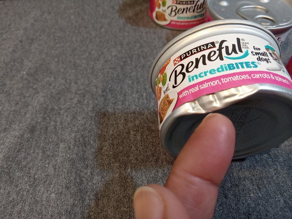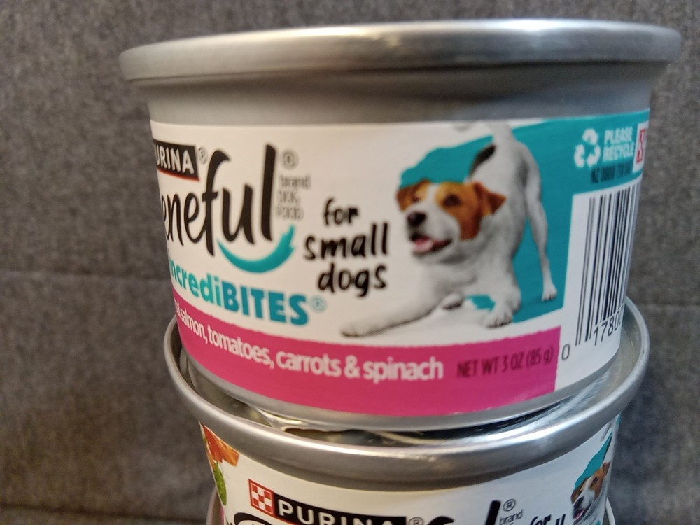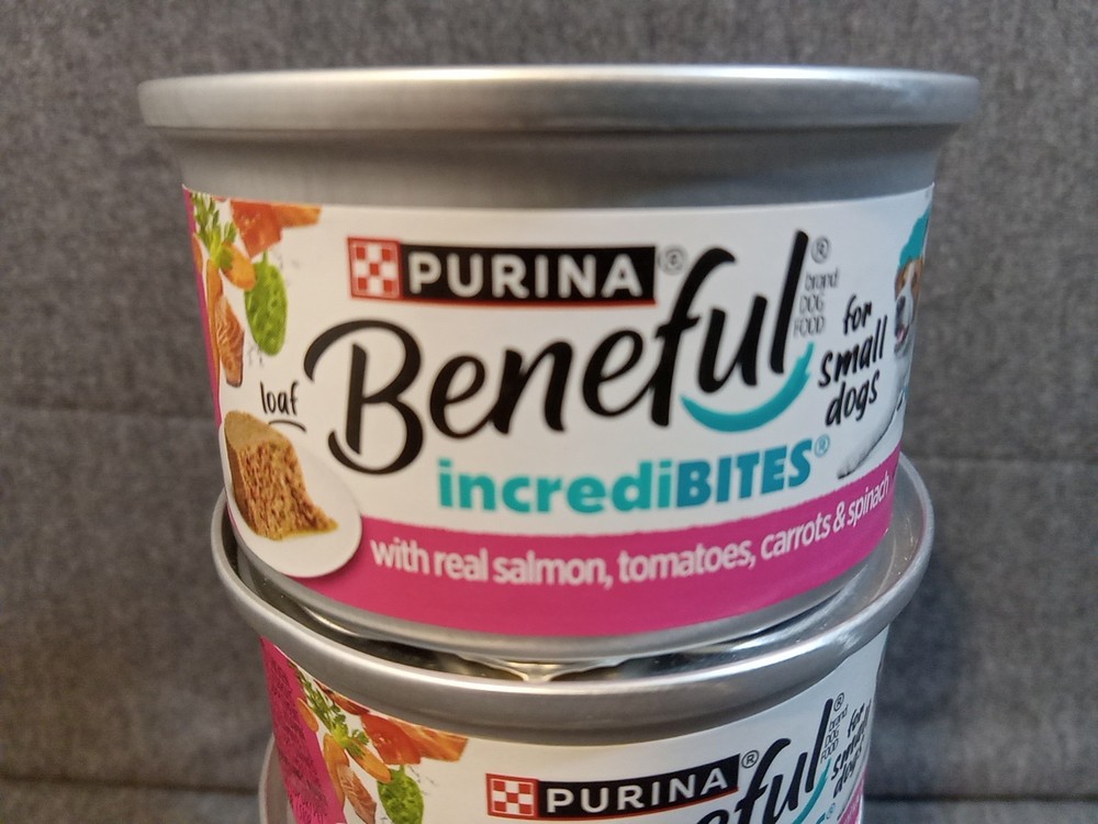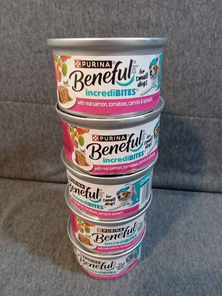 Purina Beneful IncrediBites Wet Food Salmon Carrots Small Dogs 3 Oz Lot Of 5 The Purina Beneful IncrediBites Wet Food in Salmon & Carrots flavor is specially designed for small adult dogs. Each can contains 3 oz of high protein wet food made with ingredients like salmon, carrots, tomatoes, and spinach. With a lot of 5 cans included, this product provides nourishing meals for your furry companion with an expiration date of 7/27. Trust in the Purina brand to ensure your dog receives balanced and delicious meals. *** All Items Purchased On OR Before 1 PM EST Will Be Shipped The Same Day *** *** Item Descriptions *** Brand - Purina Condition - New cans are dented Type - Wet Dog Food Food Flavor - Real Salmon, Tomatoes, Carrots, Spinach For - Adults Size - 3 Oz. UPC# 017800189767