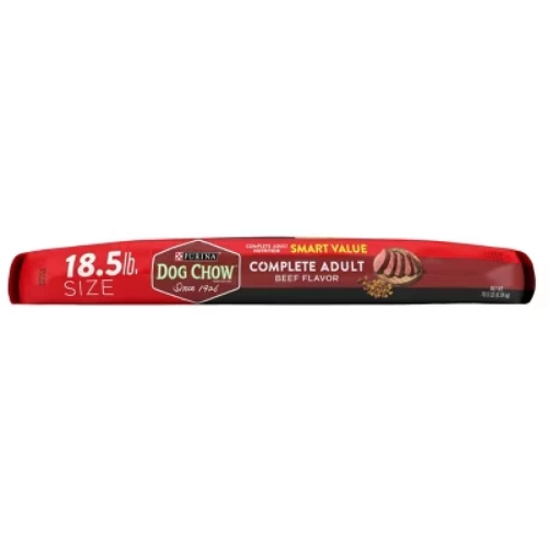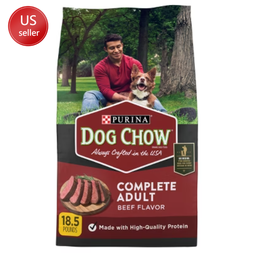 Description Give your dog the nutrition he needs along with the taste he loves when you serve up Purina Dog Chow Complete Adult With Real Beef dry dog food. This delicious recipe is made with real beef and other high-quality ingredients, giving him a wholesome meal option that you can both feel good about. With 23 essential vitamins and minerals in every serving, this dry dog food helps support your dog's overall health and wellness. Crafted without artificial flavors, this recipe provides 100% complete and balanced nutrition that adult dogs need and supports immune health. High-quality protein, like real beef, in every serving helps support your dog's strong muscles, so he can maintain his active lifestyle. Purina Dog Chow is carefully crafted by employees who trust it enough to feed it to their own dogs. Tempt your dog to his dish with the delightful flavors found in this dry dog food recipe, and rest easy knowing he's getting a nutritious meal. highlights Made with real beef 100% complete and balanced for adult dogs Contains 23 essential vitamins and minerals Supports your dog's immune system Highly digestible formula