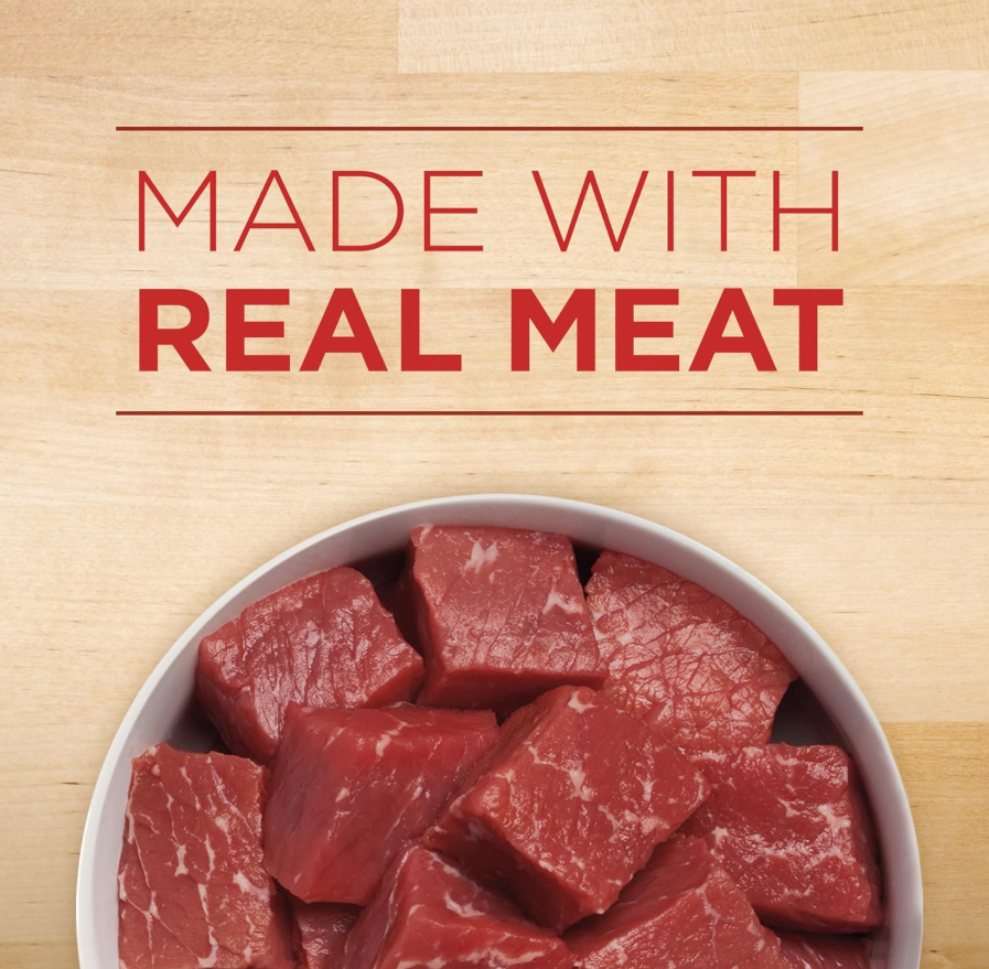 Natural dog food formula with added vitamins for dogs, minerals and nutrients made with real beef for the taste dogs love No poultry by-products in this dog wet food so your dog gets everything he needs and nothing he doesn’t 100 percent nutrition. 0 percent fillers. Every ingredient in this adult dog food formula has a purpose This Purina high protein canned dog food promotes whole-body health in adult dogs with 100 percent complete and balanced nutrition and antioxidants to support the immune system High protein dog food helps to support strong muscles, and a savory wet dog food gravy adds delicious flavor