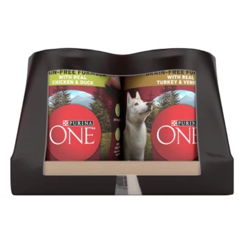 Description Keep your dog's dinners interesting with two nutritious and delicious formulas with this Purina ONE Classic Ground Entree Adult Dog Food Wet Variety ack Natural with Added Vitamins, Minerals and Nutrients. This pack contains six canned dog food recipes in two delicious flavors: Turkey and Venison Entree and Chicken and Duck Entree. Each Purina ONE dog food serving provides the nutrition your adult dog needs. With this Purina ONE adult wet dog food variety pack, you can switch from one great soft dog food flavor to the other to give him the flavor he wants and the nutrition he deserves. highlights Canned dog food with added vitamins, minerals and nutrients Purina ONE dog food variety pack with real poultry as the number 1 ingredient delivering protein to support strong muscles. 100 percent nutrition for adult dogs with 0 percent fillers, ensuring every ingredient in this dog food wet recipe has a purpose, such as antioxidants to help support a healthy immune system. Premium dog food made by veterinarian-recommended Purina ONE. Canned dog food formulated with adult dogs in mind and containing no poultry by-products and no artificial colors, flavors or preservatives. Loading content