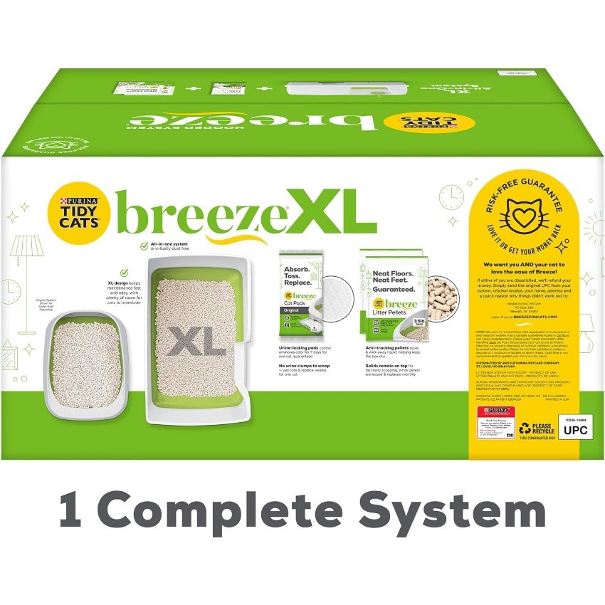 Purina Tidy Cats Non Clumping Litter System, Breeze XL All-in-One Odor Control & Easy Clean Multi Cat Box - 18 lb. Box About this item The extra-large litter box for big cats is larger in size and designed to give your cat a better experience, and features high sides to prevent litter tracking and keep messes at bay No-snap litter system, XL all-in-one odor control and easy-clean multi-cat box The XL Litter Box System includes a litter box with scoop, a pack of 4 litter pads, and 2 bags of 3.5 lb litter pellets, giving your cat a month to fill Solids stay on top for quick drainage and urine is locked in the super absorbent litter pad below so there are no urine clumps to scoop. absorb throw instead The system's anti-tracking litter particles reduce tracking around the litter box. Tidy floors. Neat feet. rest assured Fast Delivery:We promise that the package will arrive within 5 business days after the order payment is completed. Please to tell us if you have any request, we will solve your problem within 24 hours. 1---Please feel free to contact us through eBay Message ifrou have question,such as tracking number,shipping statusct.. 2---Please DON'T GIVE NEGARTIVE or NEUTRAL REVIEW or OPEN ANY CASES before contact us through ebay inbox. 3---Sometimes we may send small gift for you,please keep it if you get some gift from us.And hope you like it. 4---To offer best service,sometimes we will update the status of your order,please check your ebay inbox time by time. Anyway,thanks so much,enjoy shopping. There’s no customs tax for you to pay;we’ll settle it.