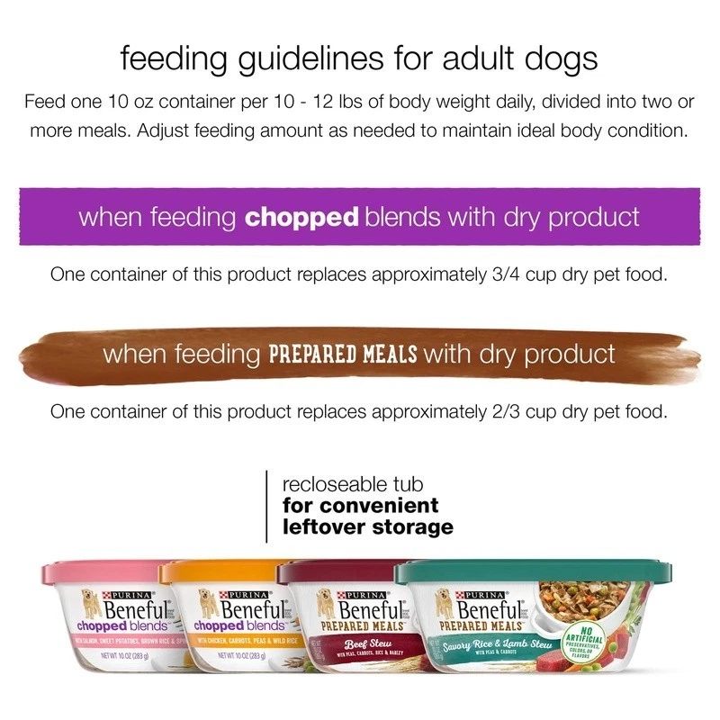 Cozy Electric Heating Blanket Faux Fur Soft Warm Throw Home Office Use 44.98 USD Free shipping 10 Piece Glass Mixing Bowls Set W/ Lids Food Storage Prep Serving Dish New 20.86 USD 22.87 USD Free shipping 9% off Soft Heated Blanket Twin Sherpa Electric Auto Off 5 Heat Settings Comfortable US 47.49 USD 53.89 USD Free shipping 12% off Electric Heated Blanket Soft Warm Auto-Off 5 Heat Settings Safe Eco-Friendly New 44.99 USD Free shipping Funny Inflatable Christmas Dog Peeing on Snowman W/ LED Lights Yard Decor New 50.98 USD Free shipping Wet Dog Food Chopped Ground Dinner Beef Canned Adult Nutrition 4 Pack 22oz Cans 16.27 USD 17.5 USD Free shipping 7% off Professional Handheld Seed Spreader Bag Seeder 25lbs Capacity W/ Waterproof Bag 50.35 USD 61.3 USD Free shipping 18% off 300ct Baby Wipes Light Fresh Chamomile Hypoallergenic Soft Thick Resealable New 12.02 USD 13.06 USD Free shipping 8% off Prismatic Iridescent Christmas Snowflake LED Decoration Kids Room Indoor New 31.51 USD 33.88 USD Free shipping 7% off Aluminum Threshold Extender Easy Install Durable Sill Extension Hack Saw Cut New 26.59 USD 28.59 USD Free shipping 7% off Adjustable Steel Closet Rod Multiuse Organizer Clothes Hangers Storage Solutions 18.56 USD 19.96 USD Free shipping 7% off Foldable Luggage Rack Suitcase Stand Metal Holder Easy Assembly Guest Room Hotel 57.78 USD Free shipping Give your dog a delicious and nutritious meal with Purina Dog Food Freshly Prepared Meals Variety Pack Wet Dog Food with Gravy. Each recipe in this variety pack is made with real lamb dog food and chicken dog food, delivering tender dog food chunks in a flavorful dog food gravy. This high protein dog food helps support strong muscles, while essential nutrients provide balanced nutrition for adult dogs. Crafted with wholesome ingredients, this wet dog food includes hearty vegetables and grains for a well-rounded meal. The dog food meat chunks are cooked in a savory gravy dog food sauce, making every bite flavorful and satisfying. Each serving provides the essential vitamins and minerals your dog needs for an active and healthy lifestyle. This Purina wet dog food contains no artificial colors, flavors, or preservatives, ensuring your dog gets only the best ingredients. Serve it as a complete meal or mix it with dry food as dog food toppers to enhance mealtime excitement. The variety pack allows your dog to enjoy different flavors, keeping meals interesting. Packaged in convenient, resealable tubs, this fresh dog food stays fresh between servings and makes storage simple. Whether your dog prefers chicken dog food or lamb dog food, this prepared meals wet dog food delivers a tasty, protein-rich option your dog will love. Dog food fresh with real lamb and chicken. Wet dog food with tender meat chunks in gravy. Variety pack includes multiple flavors for variety. High protein dog food supports strong muscles. Spoil your pet with Purina products. Reward yourself with points on every purchase. Download the myPurina app today. You may also like Wedding Directional Sign Kit Outdoor Ceremony Reception Guide W/ Metal Stakes US 52.54 USD 56.49 USD Free shipping 7% off Full Synthetic 0W-20 Motor Oil Engine Protection Fuel Economy Extreme Conditions 25.9 USD 27.85 USD Free shipping 7% off 3 Outlet Extension Cord 25ft Heavy Duty Indoor Outdoor Power Strip UL Listed New 31.6 USD 33.98 USD Free shipping 7% off Toilet Brush W/ Bamboo Holder Stainless Steel Handle 360 Degree Deep Cleaning US 39.26 USD 42.21 USD Free shipping 7% off Insulated Disposable Foam Cups 6oz Parties Events & Restaurants 1000 Count New 49.9 USD 53.66 USD Free shipping 7% off Ultra Platinum Full Synthetic 0W-20 Motor Oil Engine Protection Fuel Economy 5QT 38.43 USD 46.28 USD Free shipping 17% off All-Metal Pet Gate W/ Walk Through Door Sturdy Dog Barrier Indoor Outdoor New 74.98 USD Free shipping Large Dog Training Pads 100 Count Leakproof Absorbent Puppy Housebreaking Supply 36.54 USD 44.0 USD Free shipping 17% off 12 Layer A4 Paper Storage Rack Scrapbook Organizer Tower Craft Supply Holder New 48.73 USD Free shipping LED Pathway Lights Kit 8 Path Lights 4 Spotlights Easy Install Waterproof New 104.52 USD 112.39 USD Free shipping 7% off Multi-purpose Slim Bookcase 3 Shelf Storage Unit Home Office Organizer New 51.34 USD 55.2 USD Free shipping 7% off Durable Storage Cubes Non-Woven Fabric Foldable Organizers Home Office Use 23.7 USD 25.48 USD Free shipping 7% off