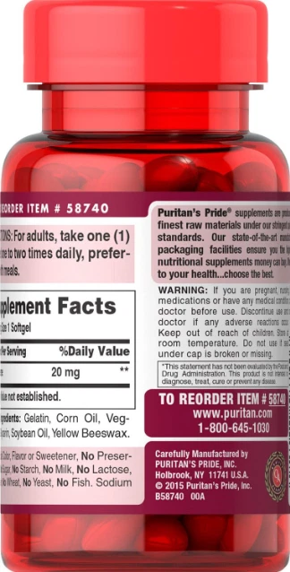 Puritan's Pride Lycopene 20 mg, Supplement for Prostate and Heart Health, 60ct US Warehouse - FREE & FAST Shipping in US Product Description: These statements have not been evaluated by the FDA. This product is not intended to diagnose, treat, cure, or prevent any disease or health condition. Promotes Prostate Health Supports Heart Health Helps Neutralize Harmful Free Radicals Lycopene promotes heart and vascular health, supports prostate function in men, and helps maintain overall good health. Some health experts believe the cardio-protective benefits of the Mediterranean diet can be explained at least in part by the inclusion of lycopene-rich foods like tomatoes and tomato-based products. One medium red tomato contains approximately 3 mg of lycopene. However, the amount of natural lycopene in the foods we eat is variable and will change as fruit ripens. Studies also show lycopene is one of the major carotenoids found in the prostate gland, making it important for prostate health. Feedback: 1.Any question for your order, please contact us in time, we will reply to you within 24 hours and give you a satisfactory answer. 2.If you are satisfied with our products and services, hope to take up your a little precious time to leave feedback reviews for our products.Thanks! 3.Your satisfaction is our effort. Welcome to order again! Have a great day! Our Policy: 100% Satisfaction Guarantee 20% of restocking fee will be charged for return item
