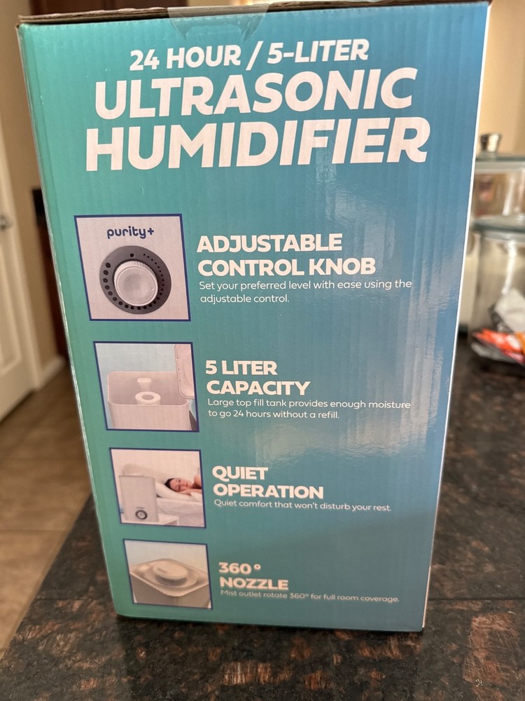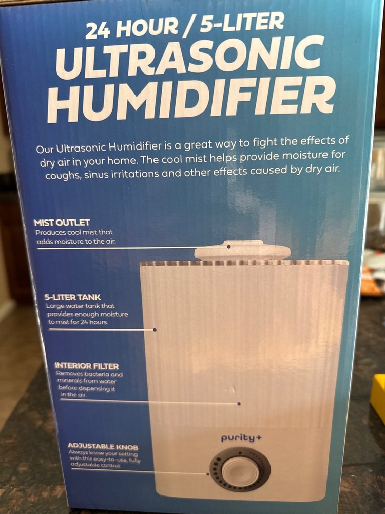 The Purity 24 hour/5-liter ultrasonic humidifier is a brand new product designed to improve indoor air quality by providing humidification through an ultrasonic method. With a timer control set for 24 hours, this humidifier can efficiently moisturize the air in a 5-liter capacity, making it ideal for maintaining a comfortable environment in any living space. Perfect for home improvement projects related to heating, cooling, and air systems, this humidifier from Home & Garden category is a must-have for creating a healthy atmosphere.