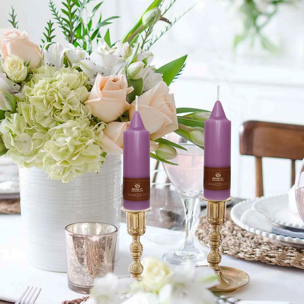 These elegant purple candles burn so cleanly and evenly without any smoke or drips! Perfect for creating a beautiful ambiance at dinner parties or weddings. Love the rich color and quality feel.