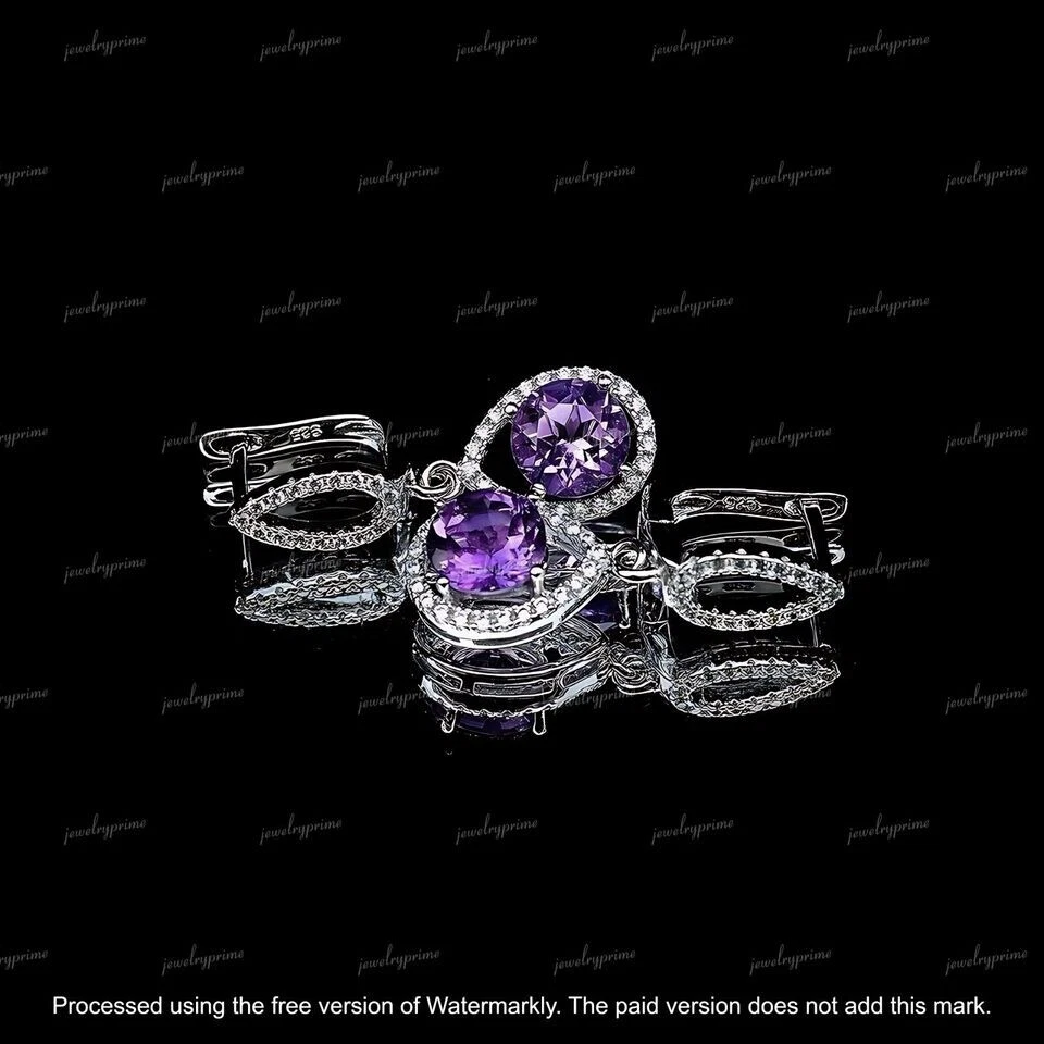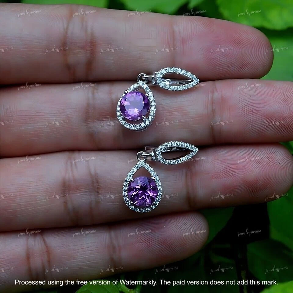 Type: Earrings Main Stone: Amethyst Ear Area: Lobe Metal: Sterling Silver Features: Engraved, Nickel-Free Personalize: No Era: Undated Signed: No Total Carat Weight: 2 carat approx Base Metal: Sterling Silver Brand: shinydiamonds Theme: Beauty Vintage: No Main Stone Shape: Round Cut Grade: Excellent Metal Purity: 925 Main Stone Color: Purple Colored Diamond Intensity: Fancy Diamond Clarity Grade: Very, Very Slightly Included (VVS1) Main Stone Creation: Lab-Created Gemstone Clarity Grade: Eye Clean Color: White Style: Dangle/Drop Wholesale: Yes Handmade: Yes Occasion: Anniversary, Birthday, Christening, Christmas Material: gemstone Main Stone Treatment: Not Enhanced Antique: No Seller Warranty: Yes Secondary Stone: Diamond