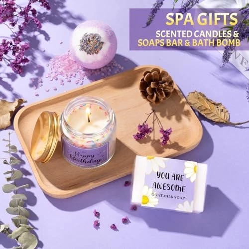 Purple Birthday Gift Basket for Women - 12pcs Thoughtful Present Set