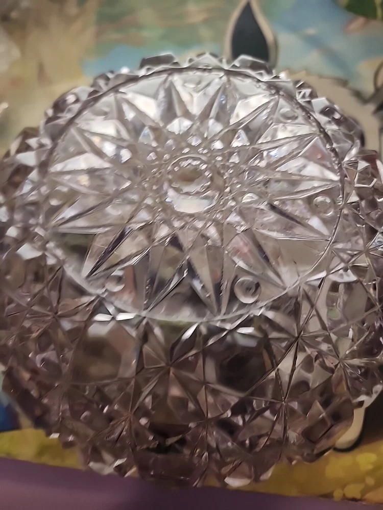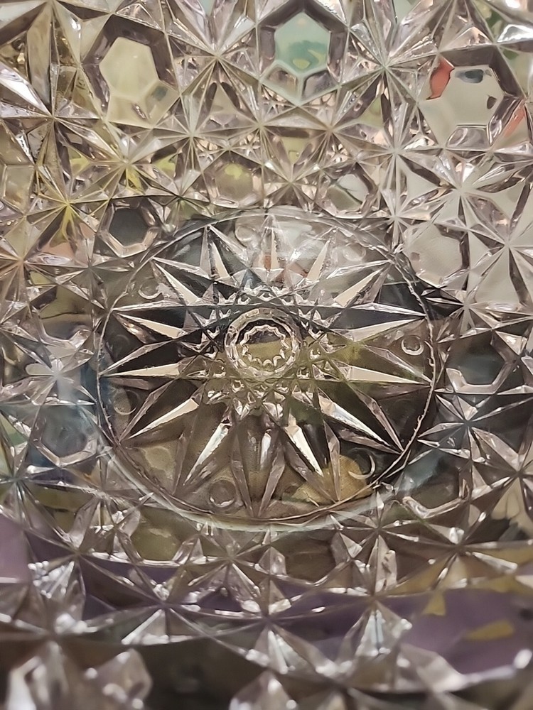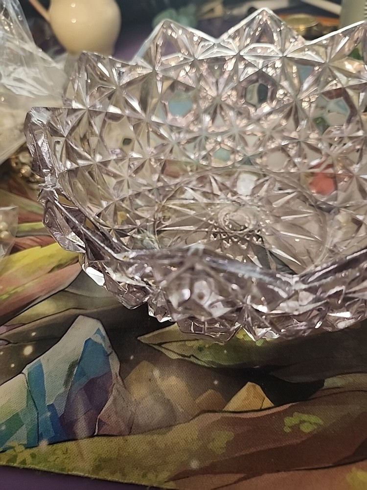 This 7" x 3" deep beautiful serving bowl is sure to add a touch of elegance to your table setting. Crafted from high-quality glass, this round bowl features a stunning purple color that will complement any decor. The vintage pattern and amethyst glass production style make it a unique addition to your collection. Glass edges are rough but not sharp. I'm not sure if it's been chipped over the decades or manufacturing defects. Nice decor piece.