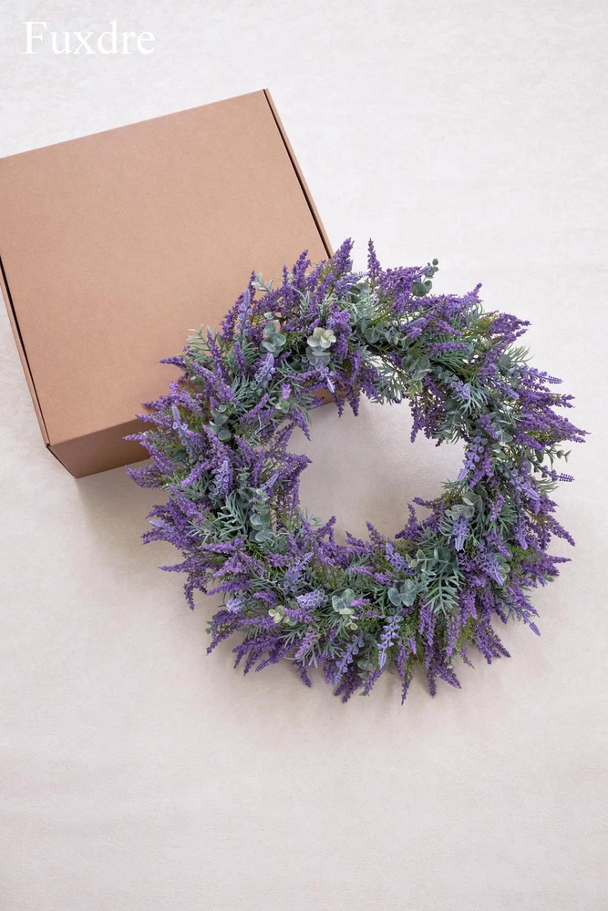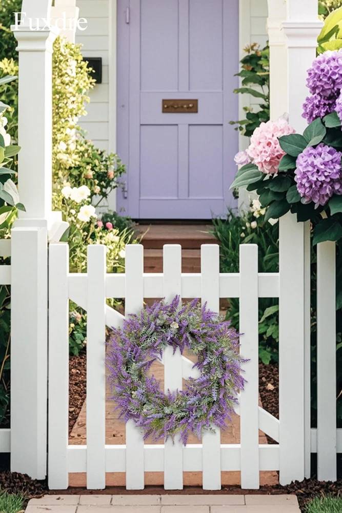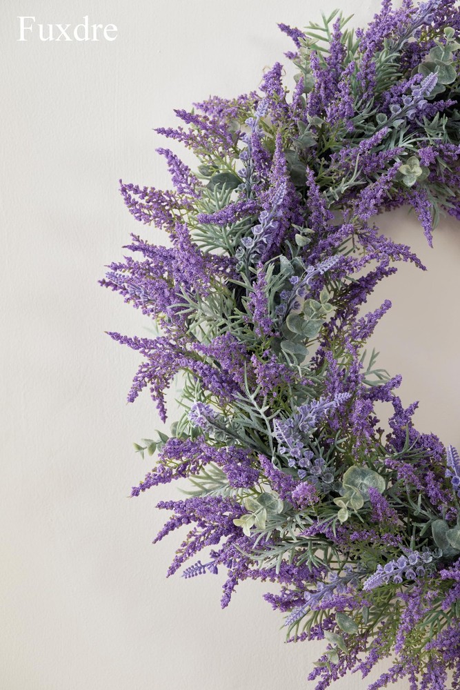 Spring Summer Wreaths for Front Door, 20 Inch Artificial Lavender Wreath for All Season Fall and Winter, Front Door Wreath Decor for Outdoor Home Party Wedding Wall Window Porch 【All-Season Elegance】20-inch purple lavender wreath for front door, crafted with realistic artificial lavender flowers that never fade or wilt. Vibrant bright purple color enhances farmhouse, rustic, or modern decor—perfect for year-round indoor/outdoor use (spring, summer, fall, winter) 【Premium Handmade Quality】Durable iron wire base wrapped with A+ grade plastic lavender leaves for a lush, full appearance. Weather-resistant and super realistic—ideal for front door, porch, window, wall, or wedding decor. 【Versatile 20-Inch Design】Large farmhouse wreath (20" outer diameter) with dense foliage for a statement look. Fits standard doors and spaces: entryways, back doors, yards, mantels, or party backdrops. 【Symbol of Joy & Gift-Ready】Lavender symbolizes happiness—perfect for Mother’s Day, weddings, birthdays, housewarming, or holidays. A thoughtful gift that brings vibrant color and charm to any home. 【Service Guarantee】's flower wreath products are carefully handmade. Contact us for worry free support - we guarantee the quality of every lavender summer wreath.