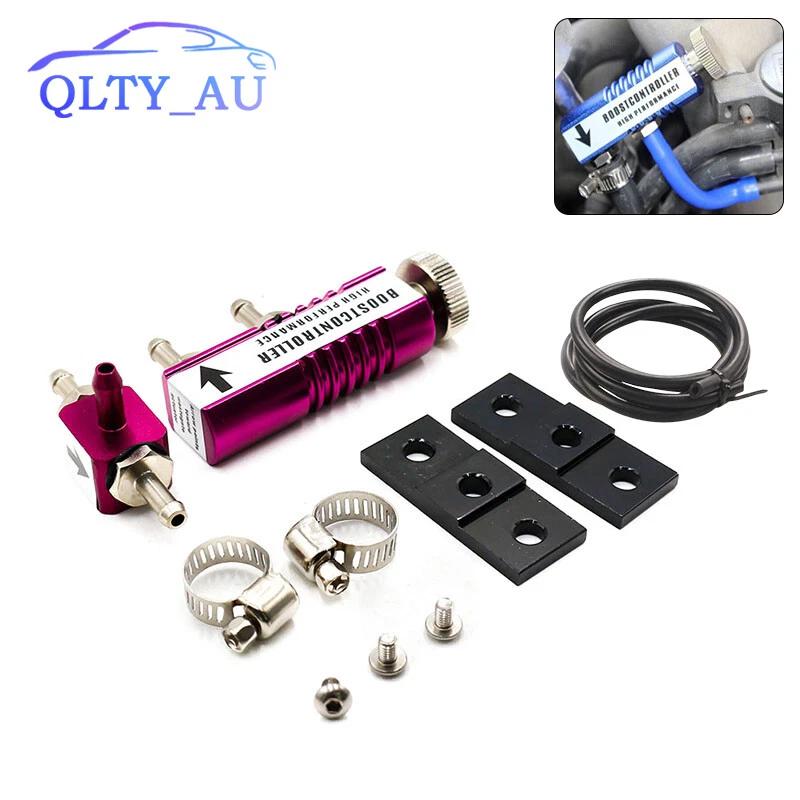 Handheld Control Device Engine Boosts Controller 1-30 PSI Turbocharger Regulator Fit for Improved Engine Power & Torques Feature 【Product Name】 Handheld Control Device Engine Boosts Controller Kit 【Size】As the pictures show 【Color】Purple (We also have black/red/blue/purple/silver/gold, if you like other colors, you can email us to send you a link or directly into the store to find) 【Material】Aluminum alloy 【Quantity】1 Set Specification 【Range】 1-30 PSI adjustable increments 【Fitment】 Suited for all turbocharged vehicles 【Useful】 Adjustable boost knob increases horsepower,torque 【Function】 A manual boost control is a simple mechanical and pneumatic control that allows some of the pressure from the exhaust gas bypass valve actuator to escape or be vented to atmosphere or returned to the intake system. This can be as simple as T-mounting the boost control wire near the actuator with a small drain screw. The screw can be tightened to varying degrees to allow air to escape from the system, thus relieving pressure on the exhaust gas bypass valve actuator and thus increasing boost levels. 【Note】Installation instructions are not included with the product. If you have any installation problems, please contact us by e-mail, we will provide you with electronic installation instructions or installation video. Fitment: Suited for turbocharged vehicles If there is any fitment uncertainty as to whether or not your car will be able to use this product, you can contact us by email! Package included: 1* Handheld Control Device Engine Boosts Controller Kit Note Manual measurement may exist 1-2cm error, please understand Please be reminded that due lighting effects, monitor's brightness/contrast settings etc, there could be some slight differences in the colour tone of the website's photo and the actual item. If there is an unexpected delay in transit of your goods, or if you find there are some unexpected problems with the product after you receive it, we sincerely hope you will email us first instead of opening a case or give bad reviews, it is very important to us and I appreciate your understanding. We guarantee that you can get a satisfactory solution.