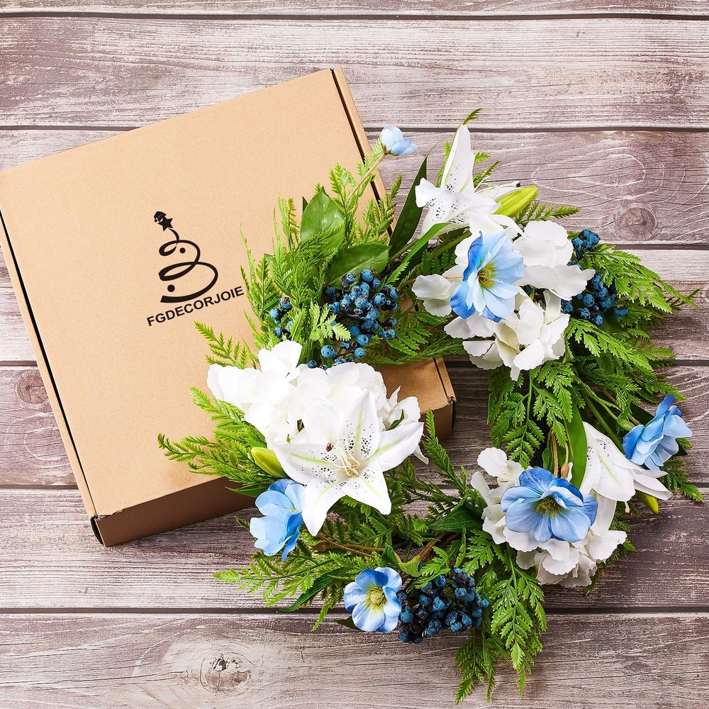 Spring Summer Wreath for Front Door with Purple Poppy,Lily, 20 inches Blue Berry Indoor Outdoor Farmhouse Wall Holiday Decor Festival High-quality Material: This artificial Spring wreath is made of silk which can be used all year round, the colors are fade-resistant and look more vivid and colorful. Our spring wreath is 100% handcrafted and that are not easy to fade or break Unique Design: This Spring front door wreath is decorated with a full circle of fake Poppy,pansy flower,ivy leaves,rose leaf,fern leaves, creates a romantic look that makes for a wonderful style for spring door decoration. Elegant and vivid colors make for timeless seasonal home décor Perfect Size: The outer diameter is about 20", the inner diameter is about 10", perfect size for indoor and outdoor decoration.You can place anywhere . Easy Maintenance: Highly realistic handmade artificial wreath makes it durable and requires no special maintenance. Just wipe it with a wet tissue or towel to keep it neat Multi-occasions: The wreath can be used indoor or outdoor, place it on your front door, or hang it above your fireplace. It's also perfect for decorating weddings, birthdays, stages, bedrooms, offices, dining rooms, and others