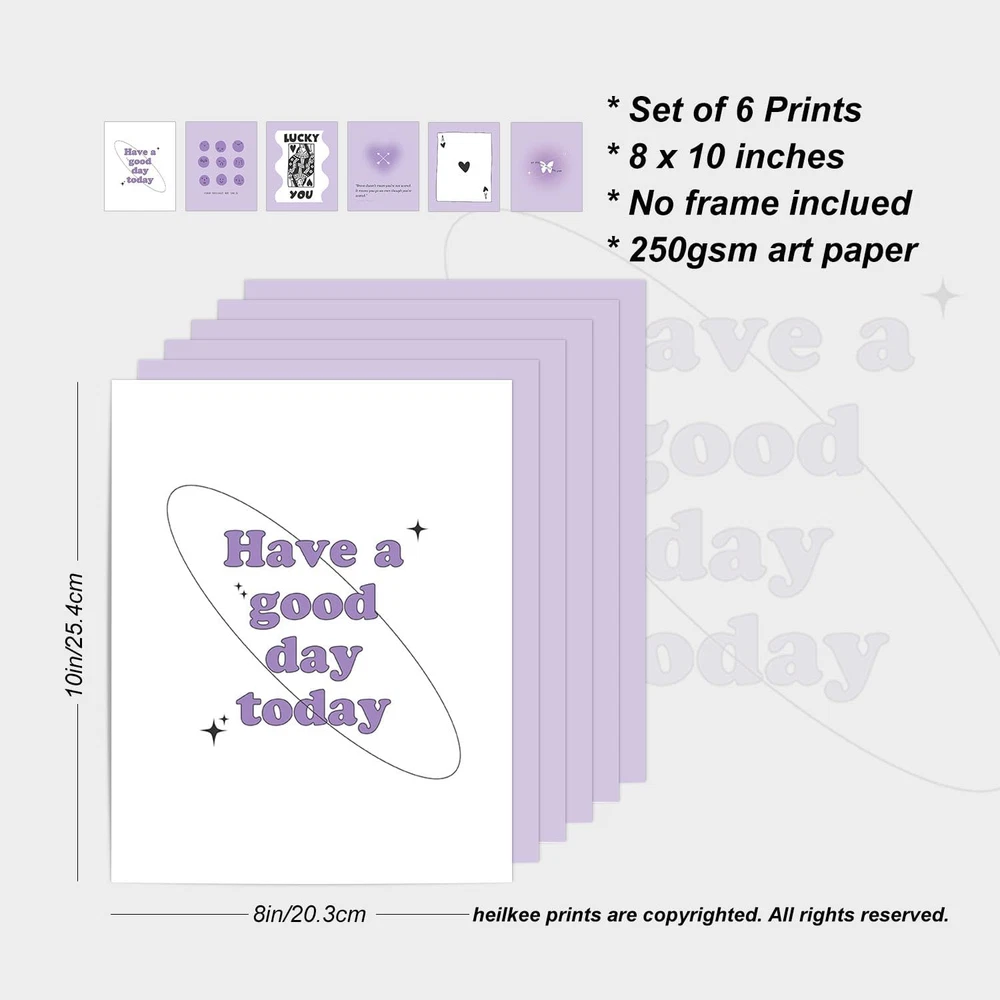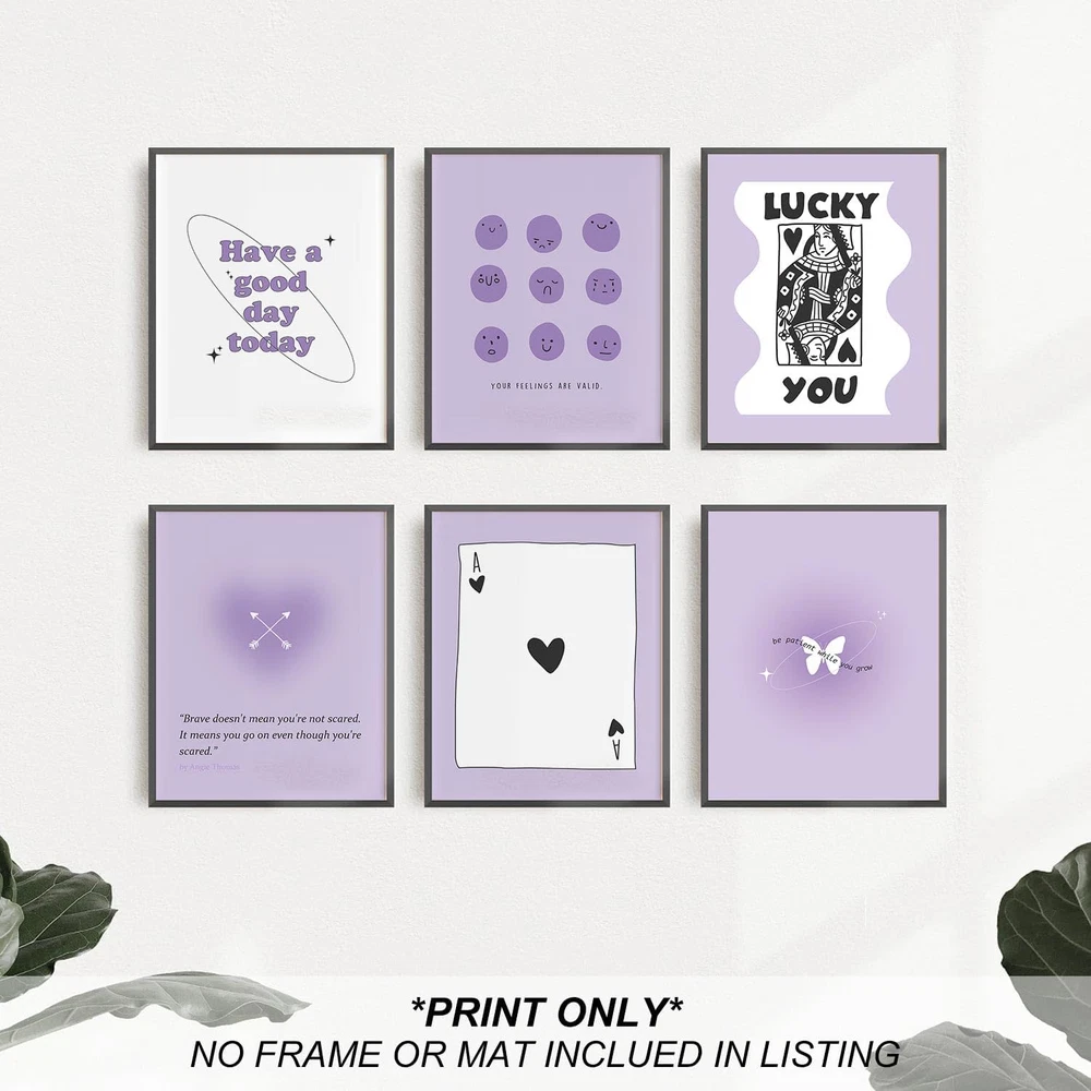 Store New Arrivals Add to Favorite View Feedback Contact Purple Preppy Wall Decor Pastel Purple Aura Gradient Poster Trendy Funky Prints Inspirational Quotes Wall Art Set of 6 Spiritual Gifts for Women(Unframed 8X10In) Description Age Range Description Teen Style Modern Number of Items 1 Pattern Heart Theme Inspirational Item Shape Rectangular Unit Count 6.0 Count Room Type Dormitory, Bathroom, Living Room, Bedroom Material Paper Color Family Pastels Frame Material Unframed Wall Art Form Art Print Paper Finish Glossy Seasons Winter, Summer, Fall, Spring Finish Type Glossy Paint Type Watercolor Frame Type Unframed Item Weight 8.98 g Special Features Unframed, Lightweight Item Dimensions L x W 10"L x 8"W Orientation Portrait Mounting Type Wall Mount Color Pastel Purple Indoor Outdoor Usage Indoor Recommended Uses For Product Bedroom, Girls Room, College Dorm, Bathroom Size 8 x 10 Inch These cute lilac gallery wall art set can add a touch of modern decor to your girly interiors SMALL BUT CUTE SIZE - Lovely and light weight to hang up; Never need large space GIVE HOME WARMTH - Decorate girls bedroom, apartment, college dorm, bathroom, kitchen, family room, guest room to make it a livable enviroment NO FRAME INCLUDED - The unframed print gives you full control over selecting the perfect frame to match your decor and style; Printed on art paper UNIQUE & THOUGHTFUL GIFT - Original gifts show you cared enough; Affordable gift for a holidays, birthdays, homecoming or christmas *About heilkee Art Prints* At heilkee, we offer a wide selection of art prints in modern, on-trend designs. Our posters fit in perfectly with a diverse range of interior styles. *Specifications* Brand: heilkee Color: Purple, White, Black Size: 8"w x 10"l Number of Pieces: 6 Piece Material: Paper Framed: No Home Decor Style: Modern, Preppy, Funky Recommended Room: Bedroom, Girls Room, College Dorm, Bathroom Theme: Lucky Ace Card, Queen of Hearts, Feelings/Emotions Poster, Positive Quotes Affirmation *More Info* Package: This item will be packed into a clear plastic sleeve & posted in a a protective stiff envelope to prevent folding or creasing. NO FRAME OR MAT INCLUDED: You'll be receiving an unframed print. Our photos show you previews of frames so you can get an idea of what your prints might look like in your home. All heilkee prints are copyrighted. All rights reserved. ABOUT US We offer the best prices around on high quality products. Our E-store includes media such as books, movies, music and games while offering electronics, toys, sporting apparel, clothing, tools, general home, garden items and more. SHIPPING We are always working hard to ensure your package arrives as soon as possible. Please understand that some factors like weather, high postal traffic, and the performance of shipping companies are outside of our control. We offer free shipping to the lower 48 states and ship within 2 business days of payment, usually sooner. We do not accept P.O. Boxes. Please provide a physical address. For shipping outside of the continental USA, we only use eBay's Global Shipping Program.The item is shipped to KY and then sent to the rest of the world. International customers are responsible for all duties and taxes. Continue to check out in order to calculate costs for shipping the item to your country. Messages regarding eBay's Global Shipping Program MUST be directed at eBay EXCLUSIVELY. RETURNS We offer a 30-Day Return Policy on items which you are not completely satisfied with. You have the option for a full-refund or an exchange of the item. No returns are available on items shipped outside of the USA. PAYMENT We accept PayPal. CONTACT US This page content is yet to come Please ad us to your favorite seller and visit again later Thank You CUSTOMER SATISFACTION We try our very best to make sure every customer is completely satisfied. If there's a problem, message us! We're happy to help. WE ACCEPT Copyright © 2021 AutoDS. | All Rights Reserved