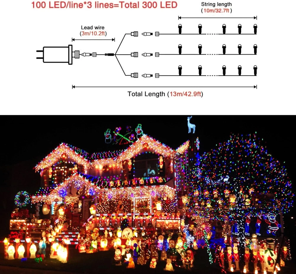 Brand: Does not apply Occasion Type: Christmas,Wedding,Birthday Party,Home Power Source: Corded Electric Style: Traditional Special Feature: Corded Theme: Christmas Style Name: Traditional Seasons: winter Light Color: Multicolor Type: Does not apply Occasion: Christmas,Wedding,Birthday Party,Home Wattage: 5 watts Number of Items: 300 Indoor/Outdoor Usage: Indoor Number of Light Sources: 300 Controller Type: button Control Method: App Indoor Outdoor Usage: Indoor Additional Features: Corded Light Source Type: Energy Efficient