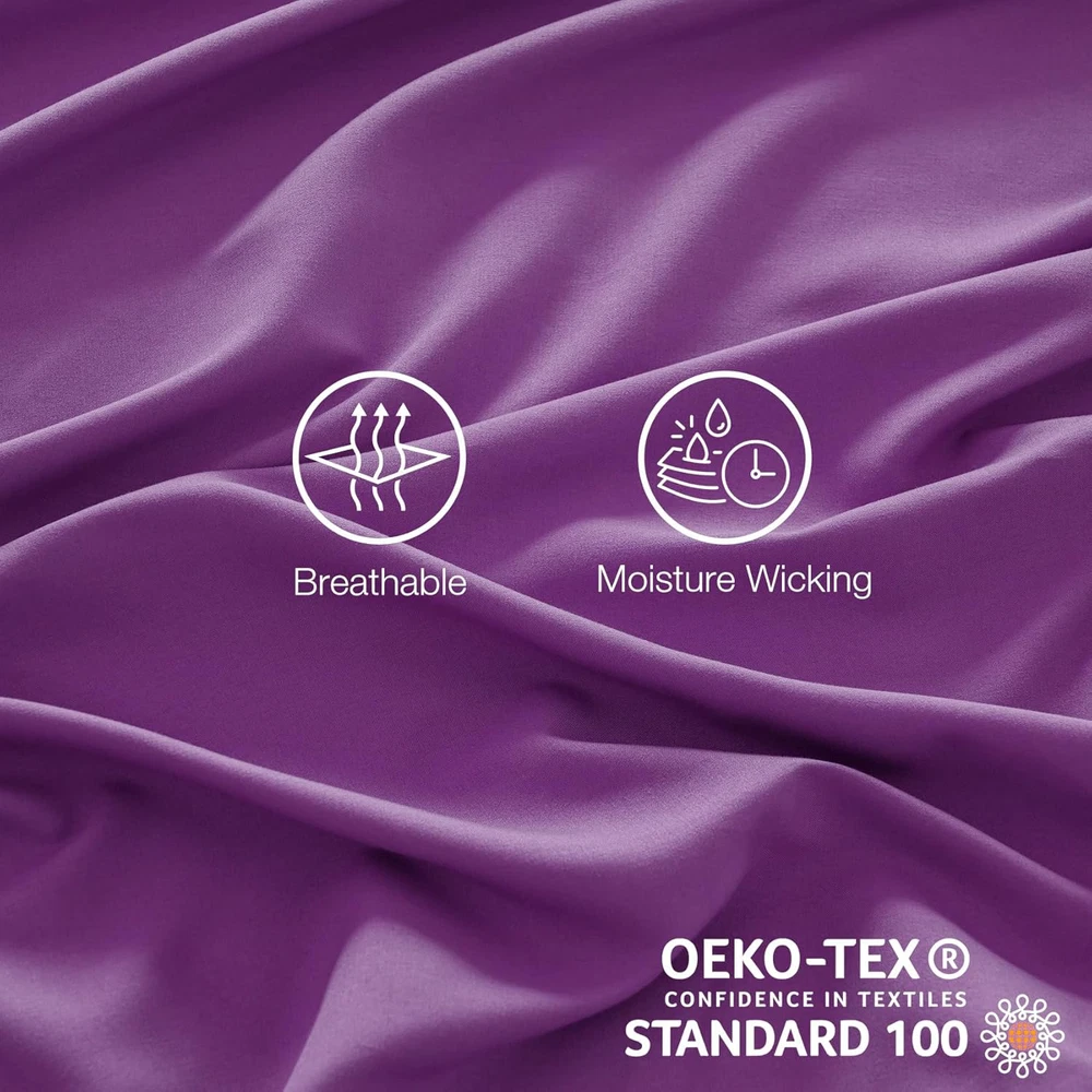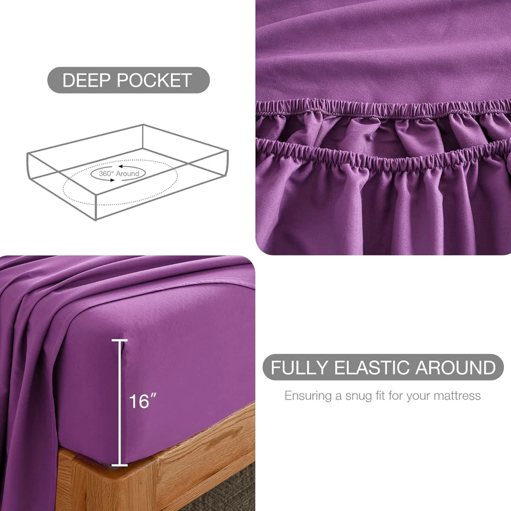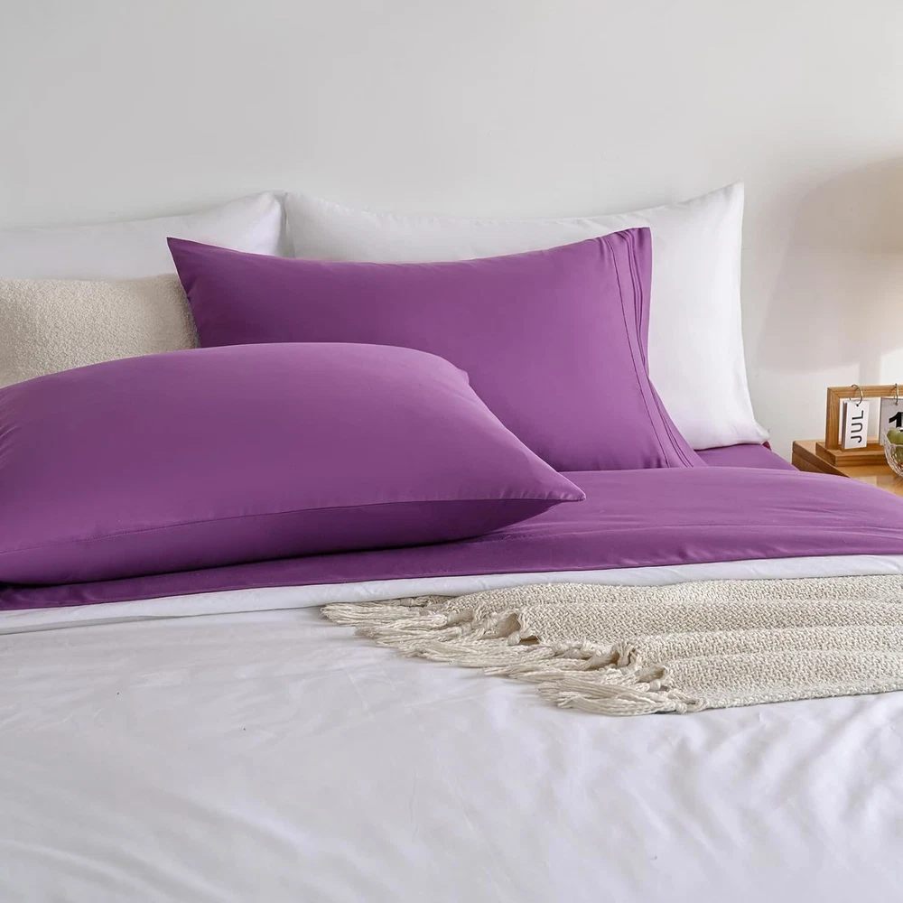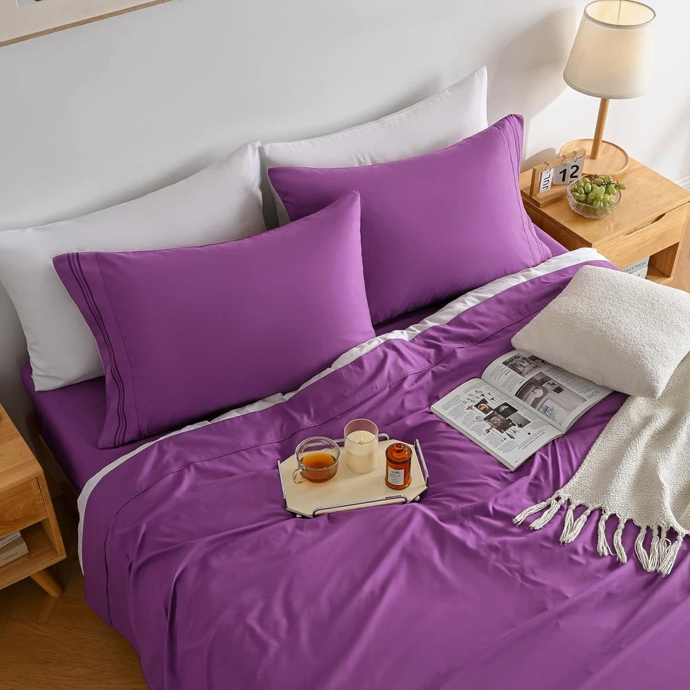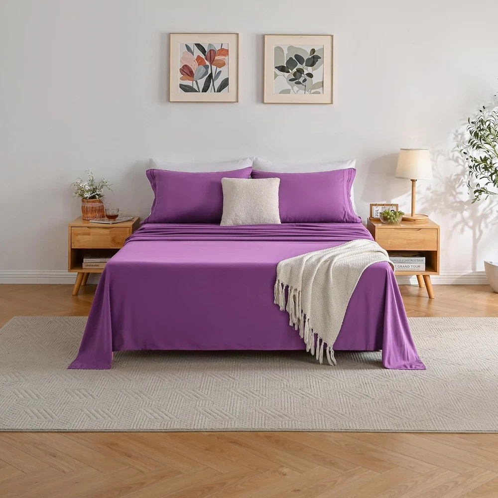 Purple Soft Cooling Microfiber Bed Sheet Set - Deep Pocket 4 Piece Double Bed