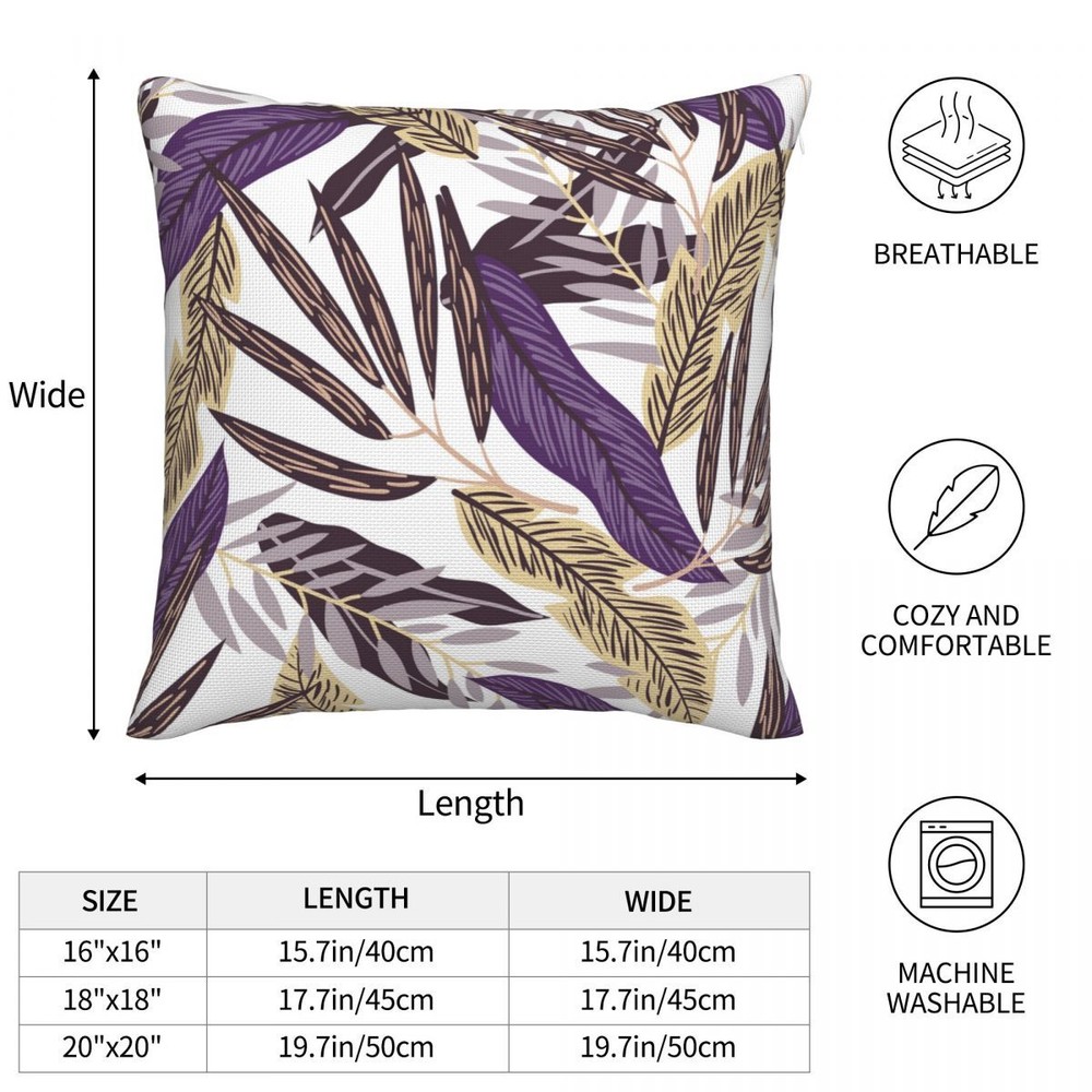 New sofa pillow pillowcase with purple element and leaf print double-sided pillowcase 【 Washing Instructions 】 It can be hand washed or machine washed at room temperature. Please do not bleach or iron. 【 Special note 】 Due to different measurement methods, an error within 1-3c