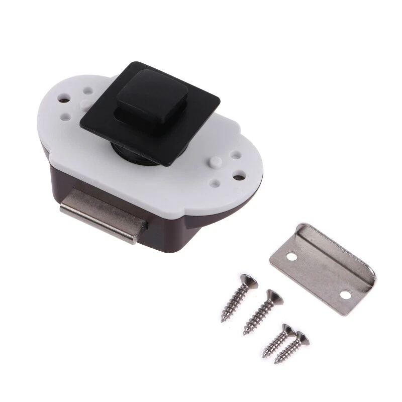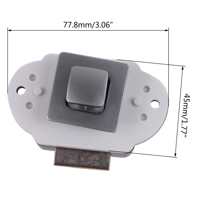 Features: This lock is a new type with handle button type ship, yacht, rv. Furniture door lock. The lock itself with both locking function also handle function. Suitable for all kinds of furniture has the beautiful appearance, color elegant, simple installation, to use. To avoid all kinds of yacht, rv shaking in the process of moving and cause indoor furniture cupboard door open. The lock just press the button, lock tongue down, pull the button to open the door, buttons in addition to can be used for opening and locking doors, also can use when shake handshandle. Specifications: Shape:Circle,Rectangle Size:Approx.77.8x45mm/3.06x1.77in Net Weight:91-99g Package Includes: 1x Push Button for note: Please allow 1mm errors due to manual measurement. Due to the difference between different monitors, the picture may not reflect the actual color of the item.