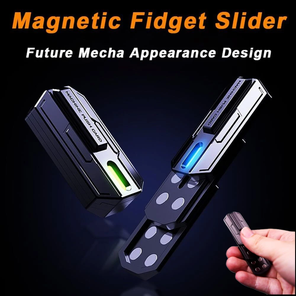 Meinuousa Your Best Online Business Partner Mecha Fidget Slider Glow-in-The-Dark Magnetic Metal Fidget Toys 3Layer Push Card 【Excellent Fidget Slider】- These fidgets slider toys is entirely made of Zinc Alloy. The surface has metal cut-out characters to enhance friction when pushing up/down, and the small notch at the end has a fluorescent layer that gives off a cool light effect when illuminated, which looks great in the dark. Every detail of the slider has been precisely machined, and the surface treatment is delicate and smooth, making it more comfortable to hold. 【How to Play】- You need to push the sliders in the direction of the position of the inner magnets, when you push this magnetic slider, the magnets inside snap into each other, giving you force feedback from the magnetic force. This process produces a very crisp metallic crashing sound. You will feel your anxiety/stress being relieved. 【Gentle Reminder】We recommend this toy for use when you are alone or in noisy public places, as the metallic sounds made may cause discomfort to others! 【Stress Relief Toy for Adults】- Whether you are a student or an office worker, you may be under study or work stress, which over time can lead to negative emotions such as depression, hyperactivity, mania, and depression. With fidget toys, you'll be able to curb unwanted habits like nail biting and smoking. Your boring time will pass quickly and you will be happy when you are alone. Many people have successfully broken bad habits with this fun and cool fidget toy. 【EDC Fidget Toy】- These relaxing fidget toys are portable and small enough to play with one hand. This way you can easily keep these delicate toys in your pocket. These fidget toys are perfect for travel, work, home or pencil cases. You can play anywhere in the office, home, school, subway, station, outdoors, etc. Also, this product comes with a black storage box for you to protect and store your fidget toys. 【Collections and Gifts】- Fidget toys are exciting gifts that people of all ages love, regardless of age or gender. You can give it to your father, husband, brother, boyfriend, best friend. This is an easy and great gift idea for any occasion like Birthday, Christmas, Thanksgiving, Halloween, New Years or any other party/event. If you're a lover of EDC fidget toys, these exquisite sliders are for you, and they are a perfect collection. Payment Shipping Returns Contact Us About US - We accept the payment through :Credit, debit, and gift cards, Apple Pay, Google Pay, PayPal, and PayPal Credit. - Payment must be fulfilled within 4 days after the end of auction. - Please make sure your ebay address is correct. Or not, please correct it before payment. - If you are a big customer, Please contact with us about the item's PRICE and SHIPPING. - Your feedback & suggestion is deeply appreciated, thanks. 1. Please make sure your address in ebay is correct. 2. We will only follow your address listed in the ebay orders for the shipment. 1. We can exchange the item within 30 days after you received it if it is defective. 2. Returned item must have all original packaging and accessories. 3. Buyer are responsible for the returning shipping costs. 1. We greatly appreciate your POSITIVE feedback. 2. Negative or Neutral feedback does not resolve any underlying issues that you may be experiencing as a buyer. 3. Any question or unsatisfaction please contact us with ebay message, we will sincerely solve for you. Feedback is very important to us, if you are satisfied with us, please leave us 5 star positive feedback to us. If you h have any problem, please contact us first BEFORE you give us neutral or negative feedback, so we can try our best to help you solve your problem. All rights reserved.